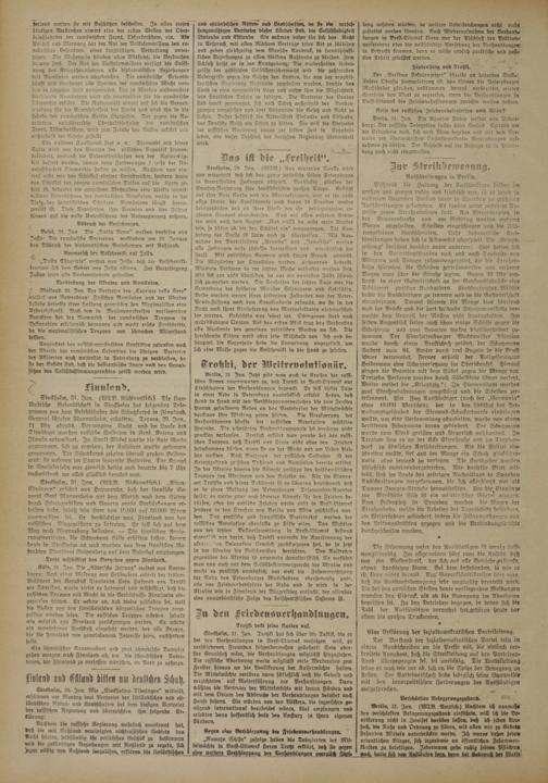Paris, 31. Jan. Die Agentur Radio meldet aus Petersburg: Die russische Delegation suchte beim Grafen Czernin um die Erlaubnis nach, sich nach Wien begeben und mit dem Vertreter der österreichischen Sozialdemokratie Besprechungen ausnehmen zu dürfen. Der Bescheid aus die Anfrage ist in Petersburg noch nicht eingetroffen.