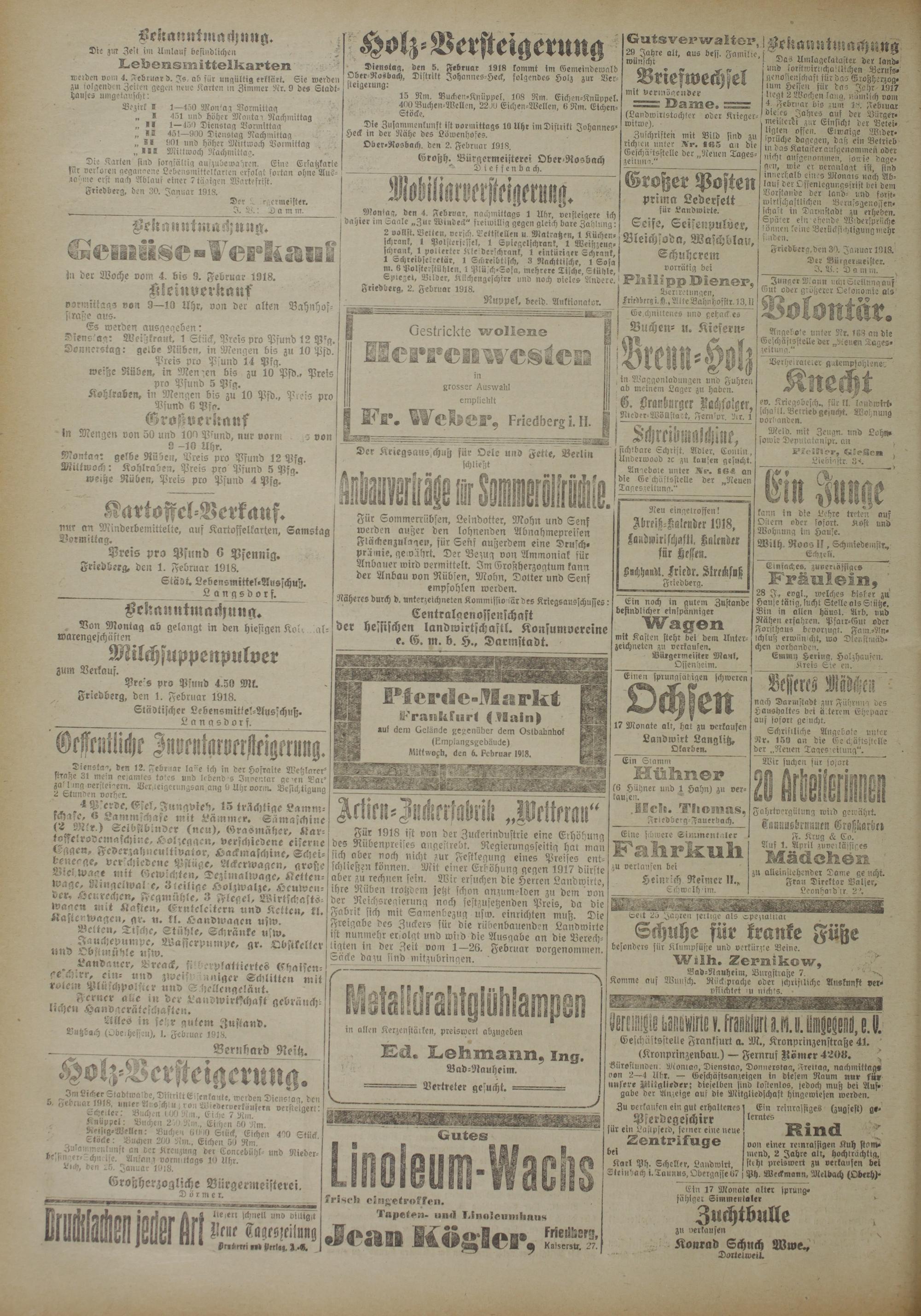 Friedberg, den 1. Februar 1918.