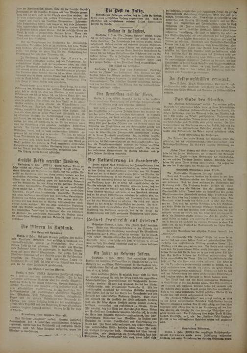 Der Streik darf nach den heute vorliegenden Meldungen in Groß-Berlin so gut wie beendet gelten. Den Arbeitswilligen der kleineren und mtttleren Betriebe haben sich nunmehr auch die Arbeiter einer ganzen Anzahl großer Fabriken angeschlossen. Auch in den unter militärische Aufsicht gestellten Werken ist die Arbeit zum Teil wieder ausgenommen worden.