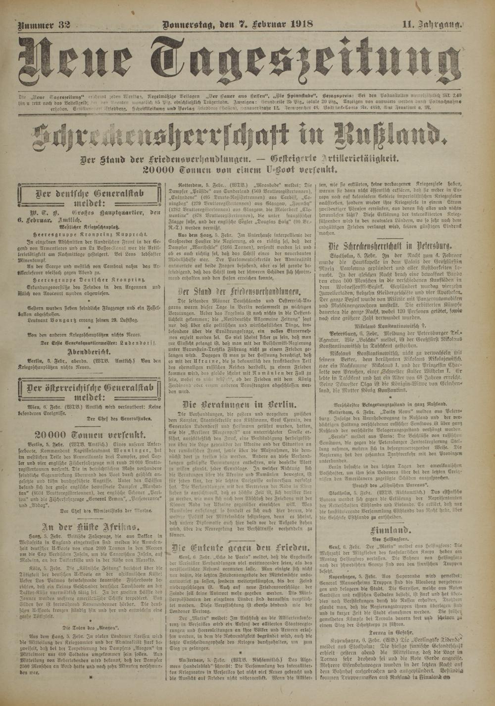 Uummer 32 , Dounerstagl, den 7. Februar 1918 11. Jahrgang.