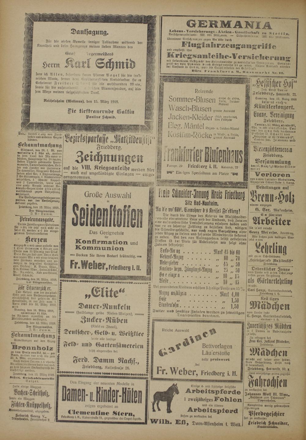 Zriedberg. den 13. Mär, 1918. Der Bürgermeister.