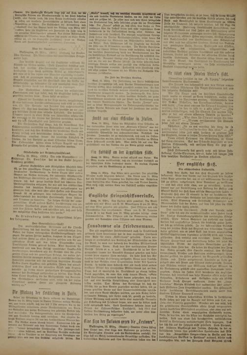 Der deutsche Angriff auf die Engländer eröffnete die Kampfe im Westen wieder. Diese Operation bestätigt uns. dast das deutsche Oberkomniando außerstande war. die strategische Lage durch politische Mittel Zu beherrsche^ l), ww man es in den letzten vier Monaten unablässig versuchte' mch daß es gezwungen wurde, sich auf ein verzweifeltes Wagnis emzulassen, um die Herrschaft über die Völker der Mittelmächte zu behaupten (!) und womöglich einen siea- rerchen Frieden durch das Kriegsglück zu erzwingen.