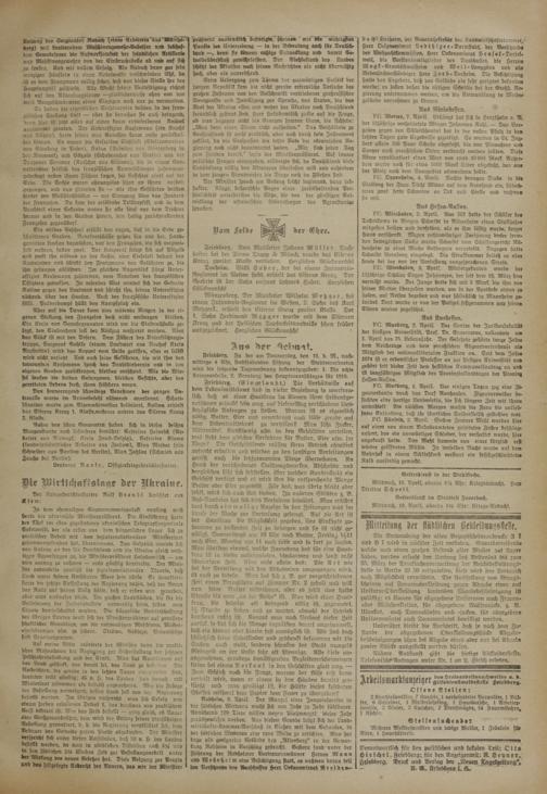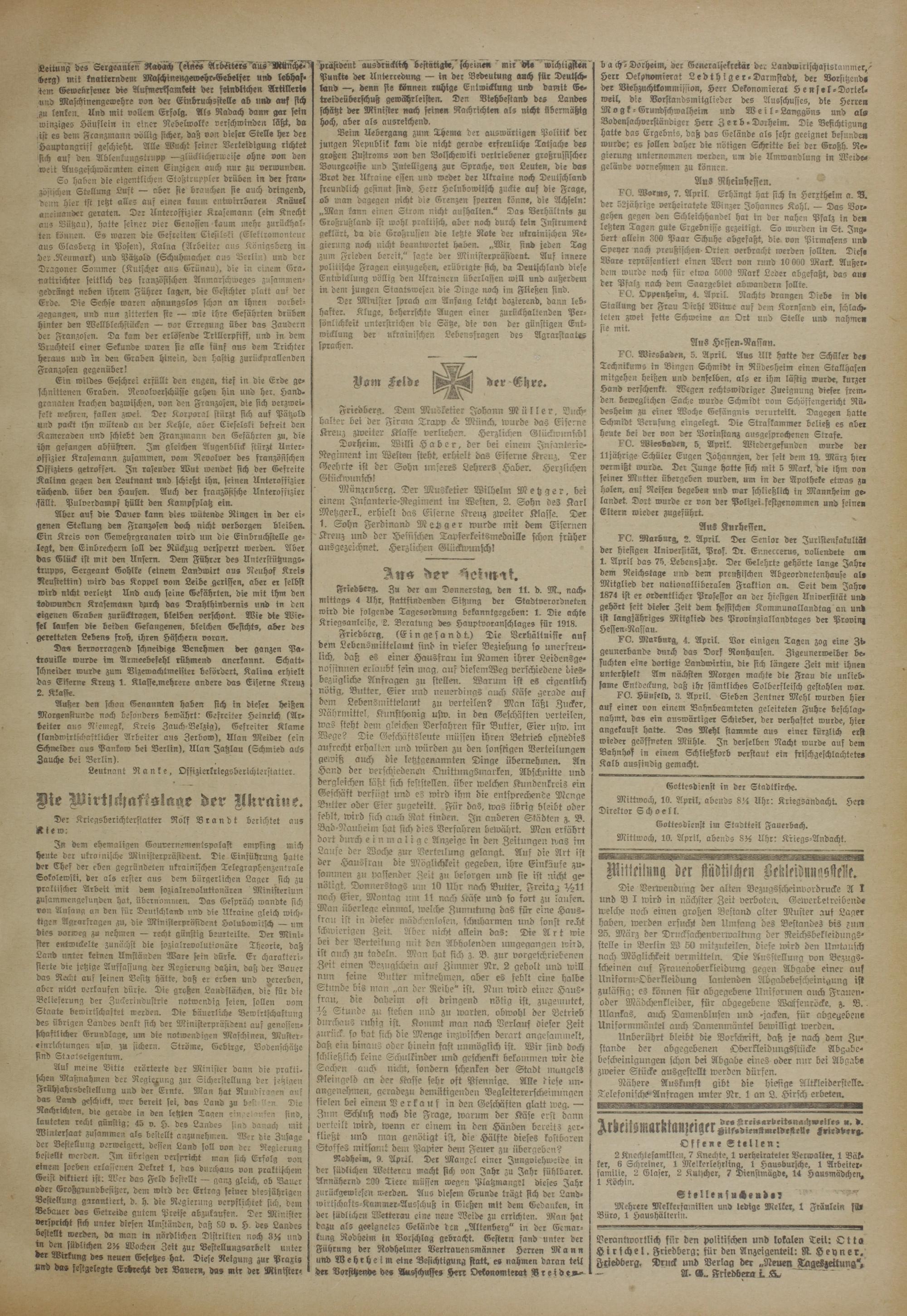 Gottesdienst im Stadtteil Fauerbach. Mittwoch, 10. April, abends 8^ Uhr: Kriegs-Andacht.