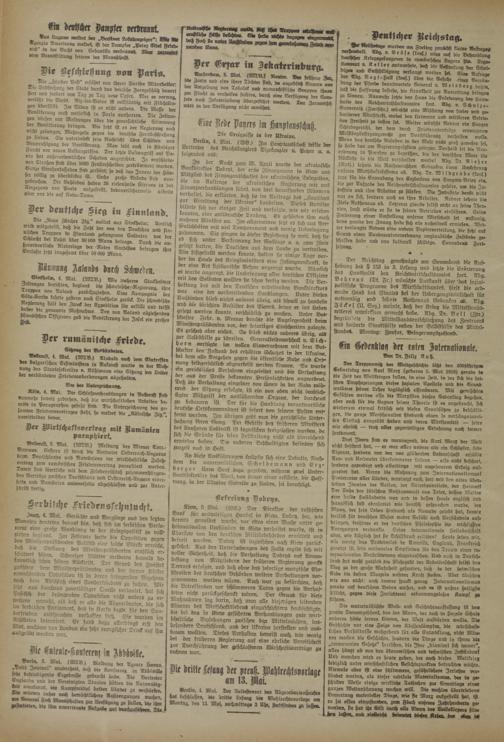 Berlin, 4. Mai Der Aeltefbenrat des Abgeordnetenhauses hat beschlossen, die dritte Lesung der Wahlrechtsvorlage am Montag, den 13. Mai nachmittags 2 Uhr, stattfinden zu lass«.