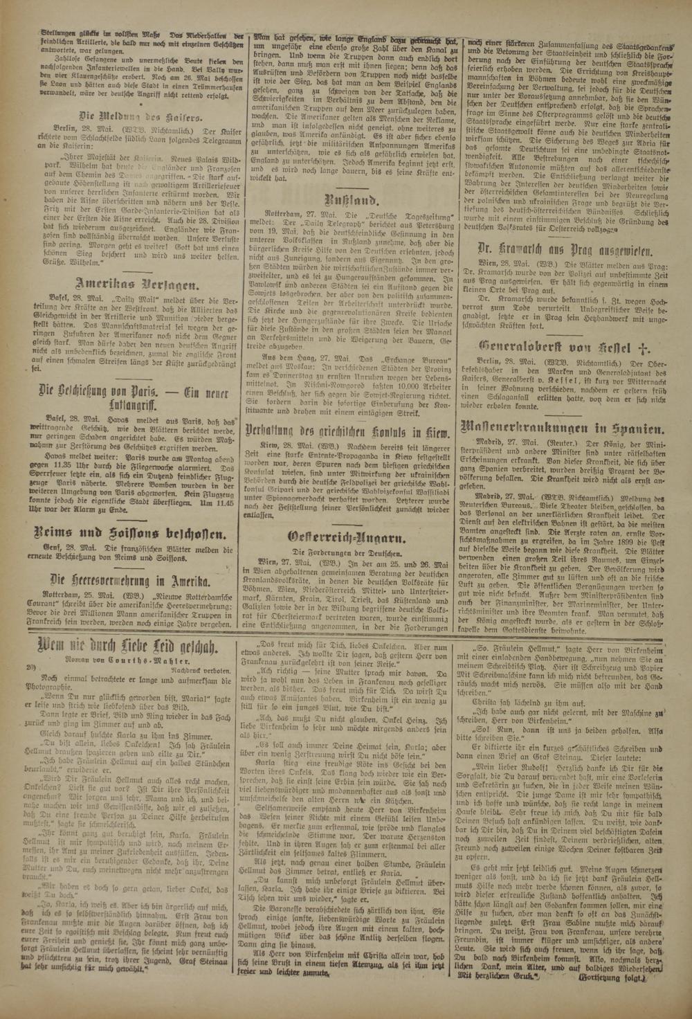 Genf, 28. Mai. Die französischen Blatter melden die erneute Beschießung von Reims und SoissonS.