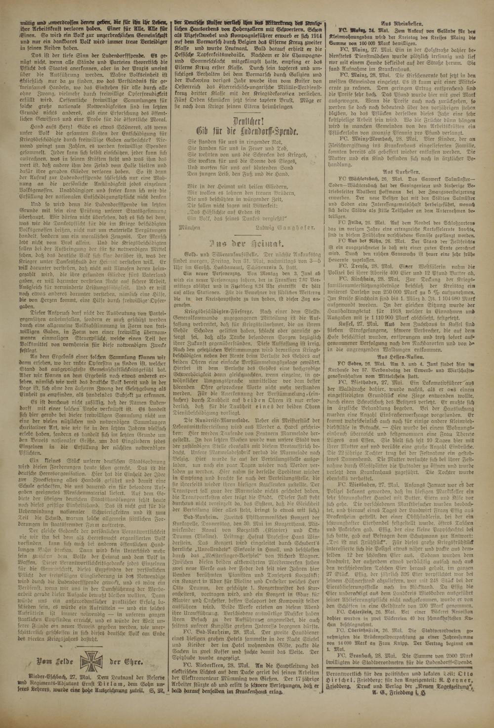 Nieder-Eschbach, 27. Mai. Dem Leutnant der Reserve Imd Regiments-Adjutant Ernst Dirlam, dem Sohn um seres Lehrers, wurde eine hohe Auszeichnung zuteil. S, M,