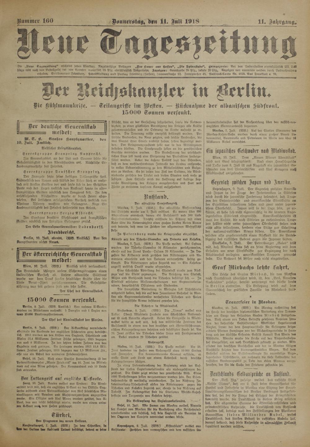 Juni landeten im Hafen von Archangelsk etwa 10 000 Serben und Franzosen. Der kommandierende General erklärte, er wolle Stadt und Land vor einem Ueberfall durch deutsche Kriegsgefangene schützen.