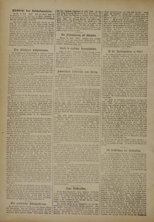 Nach alter süßer Gewohnheit zitiert man die Geister des Auslandes, wo es einen schlimmen Eindruck machen werde, daß der Mann des Verständigungsfriedens dahingegangen fei. Zum Teufel! was kann uns an dem feindlichen Ausland liegen, mit dem wir im Kriege stehen und das jede Faser seines Seins anstrengt, um uns zu vernichten.