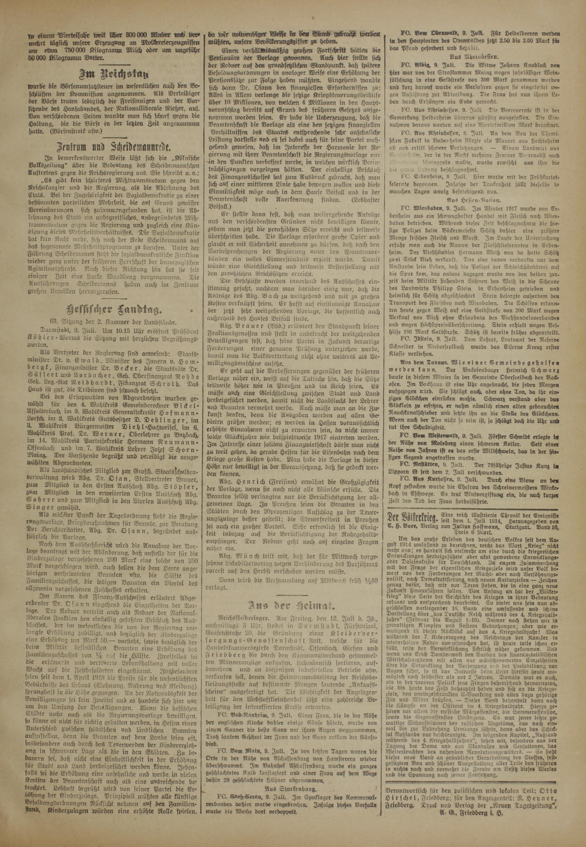 Verantwortlich für den politisck)en und lokalen Teil: Otto Hirschei, Fnedberg; fiir den Anzeigenteil: R. Heyn er. Friedberg. Druck und Verlag der „Reuen Tageszeitung", A- G., Friedberg L H.