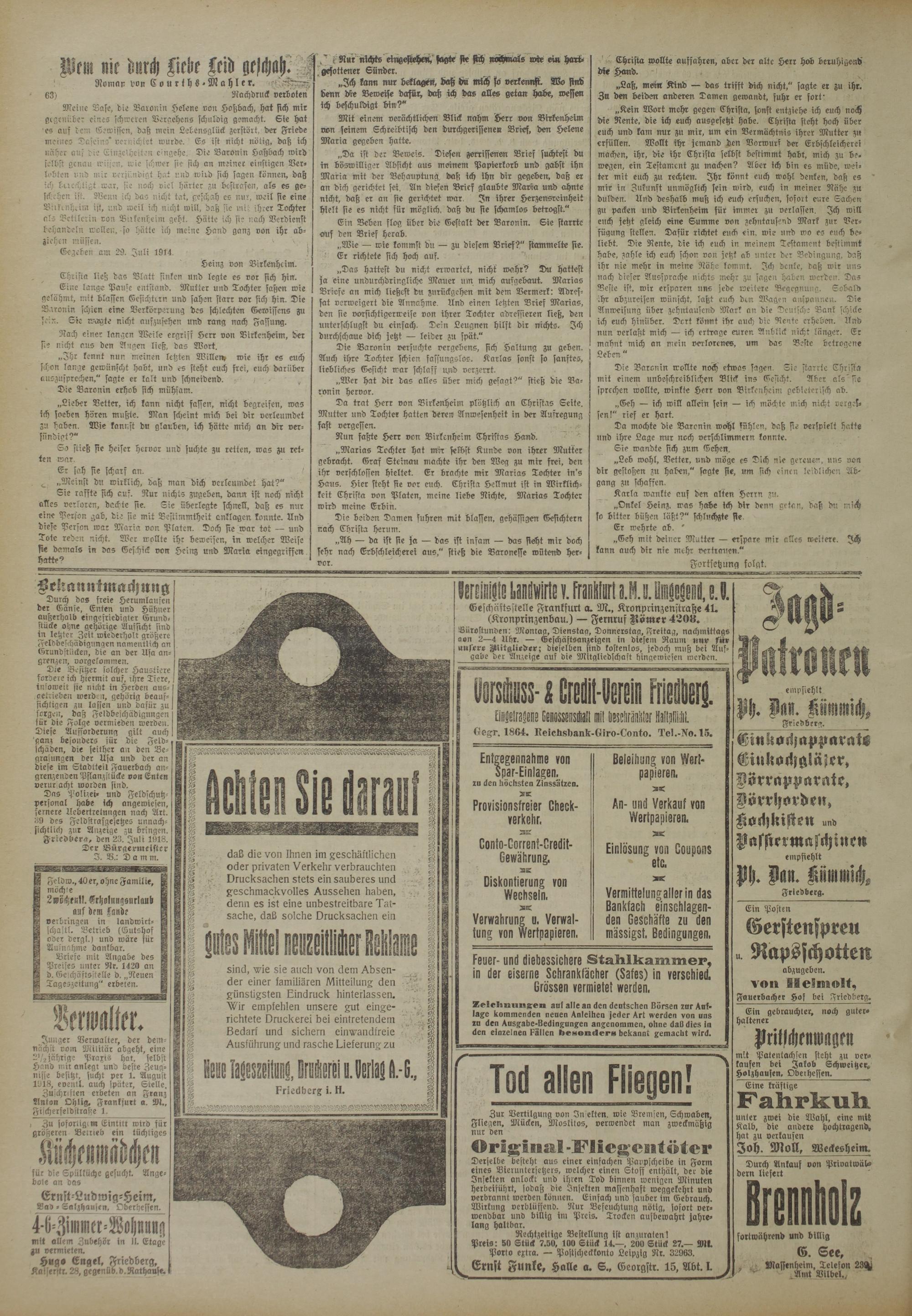 Maffenheim. Telefon 23fti Amt Vilbel.,