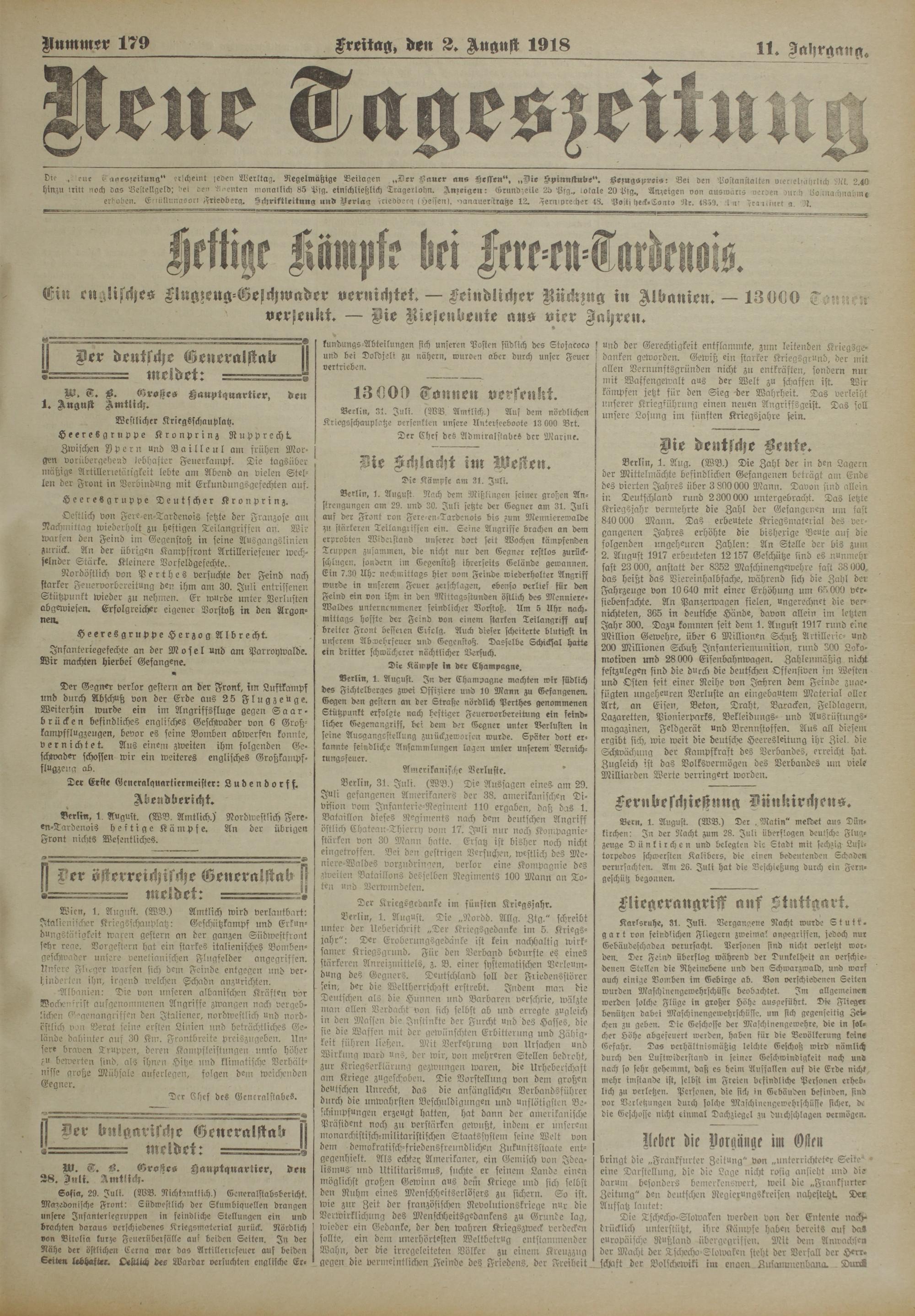 Berlin, 1. August. (WB. Amtlich.)' Nordwestlich Fere- en-Tardenois heftige Kämpfe. An der übrigen Front nichts Wesentliches.
