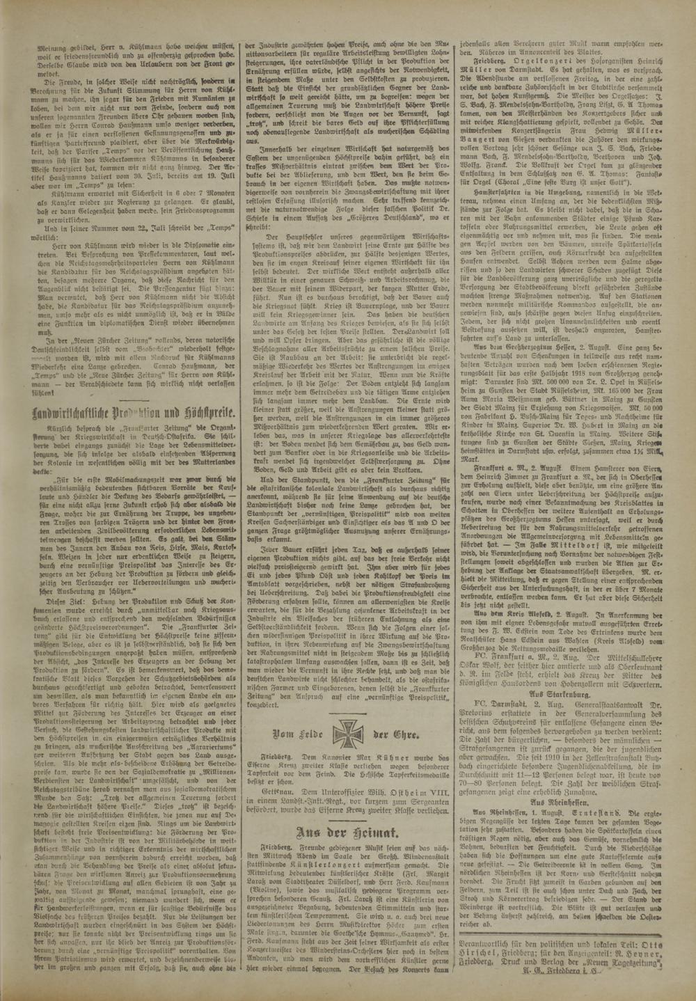FC - Frankfurt a. M., 2. Aug. Der Mittelschullchrer Oskar Wolf, der seither hier amtierte und als Oberleutnant d. R. int Felde steht, erhielt das Kreuz der Ritter des Königlichen Hausordens von Hohenzollern mit Schwertern.