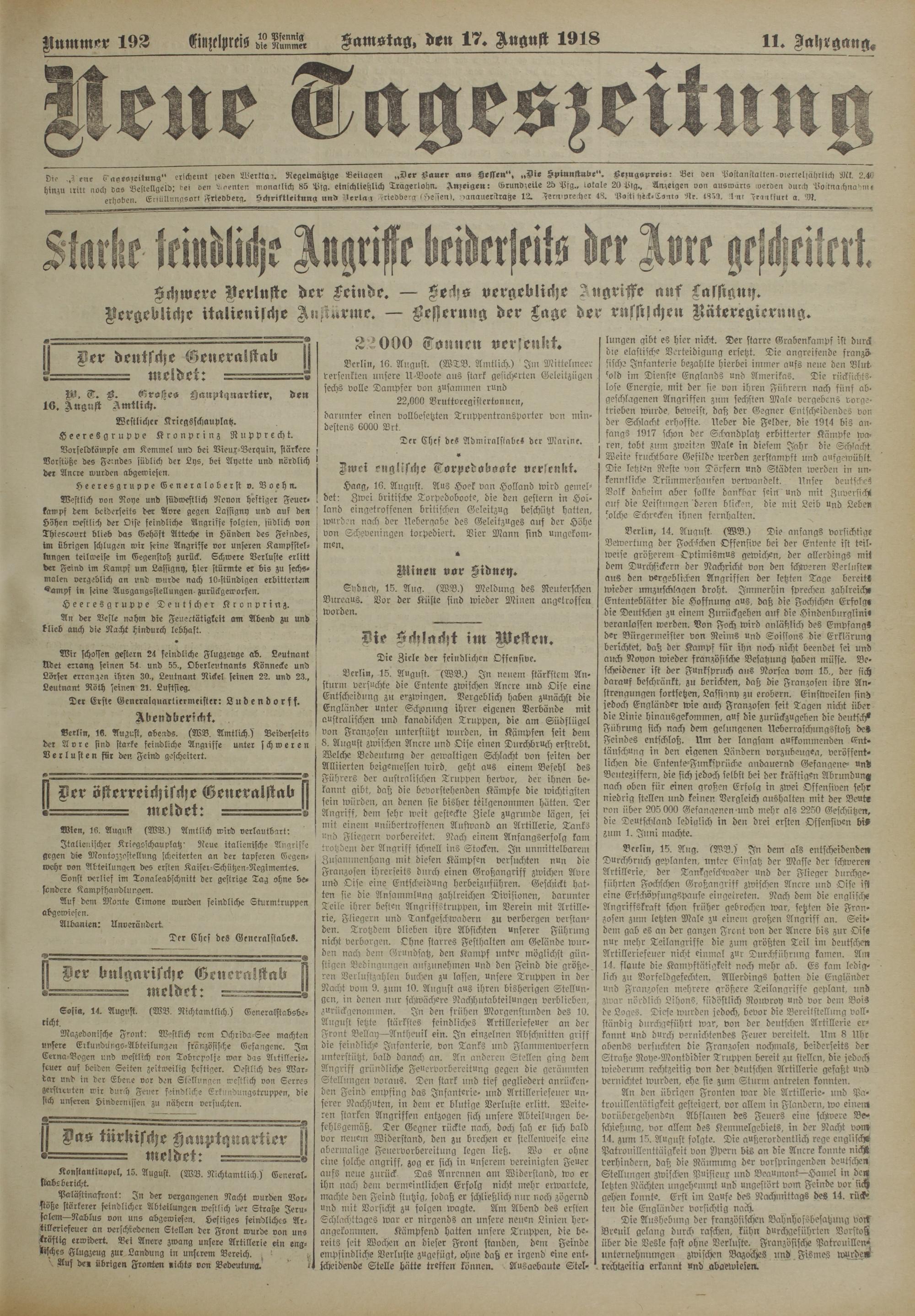 Uummer ISS Einzelpreis L LL Sams tag, den 17. August 1918 _11. Jahrgang«