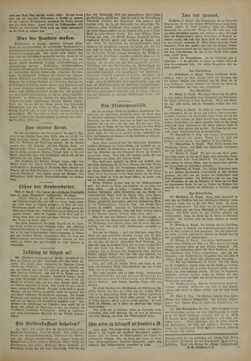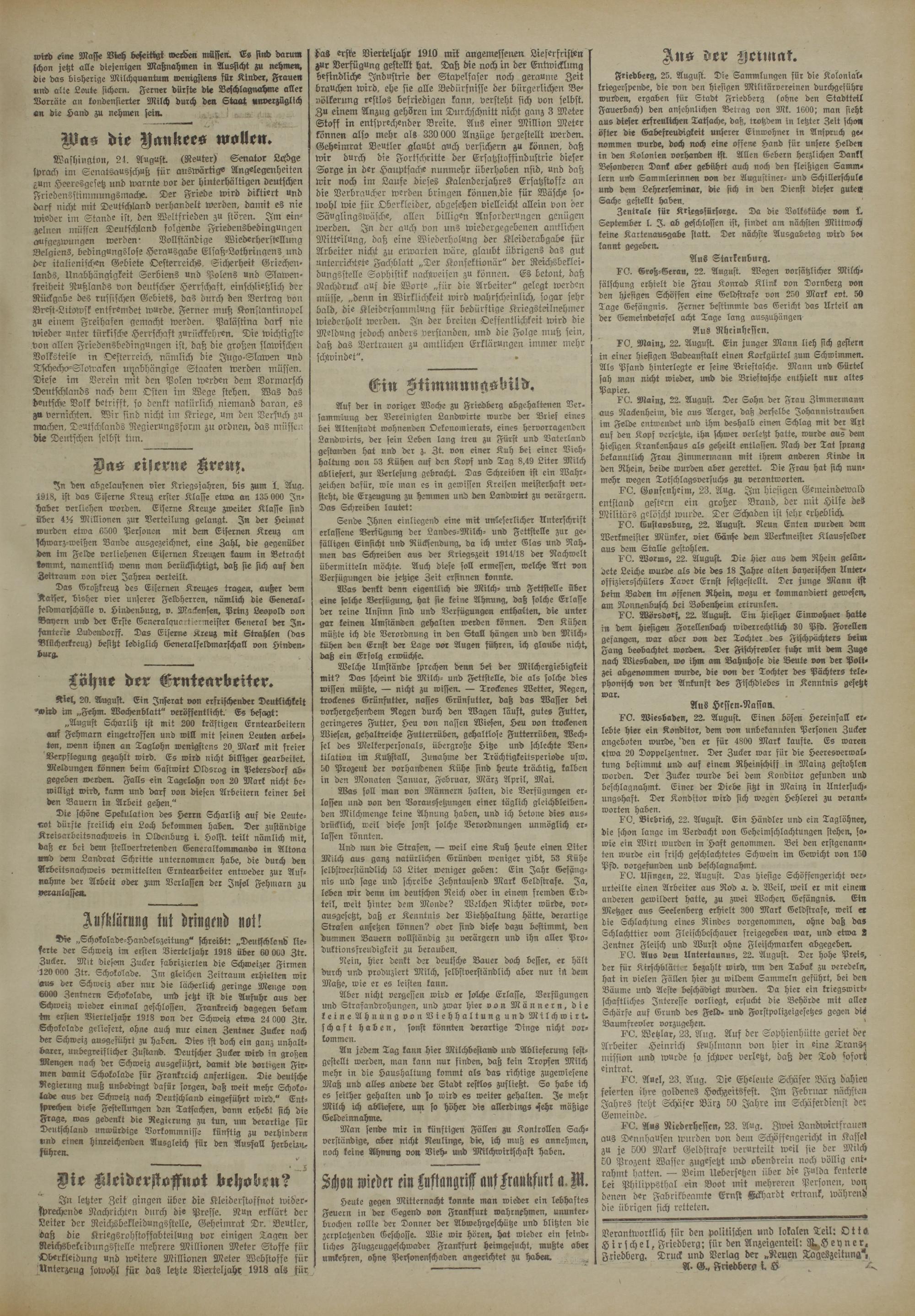 Verantwortlich für den politischen und lokalen Teil: Ott« Hirschel, Friedberg; für den Anzeigenteil: LFeyner. gliedberg. Druck und Verlag der »ftegfn Tageszeitung*, A- <$* Friedberg t £ A