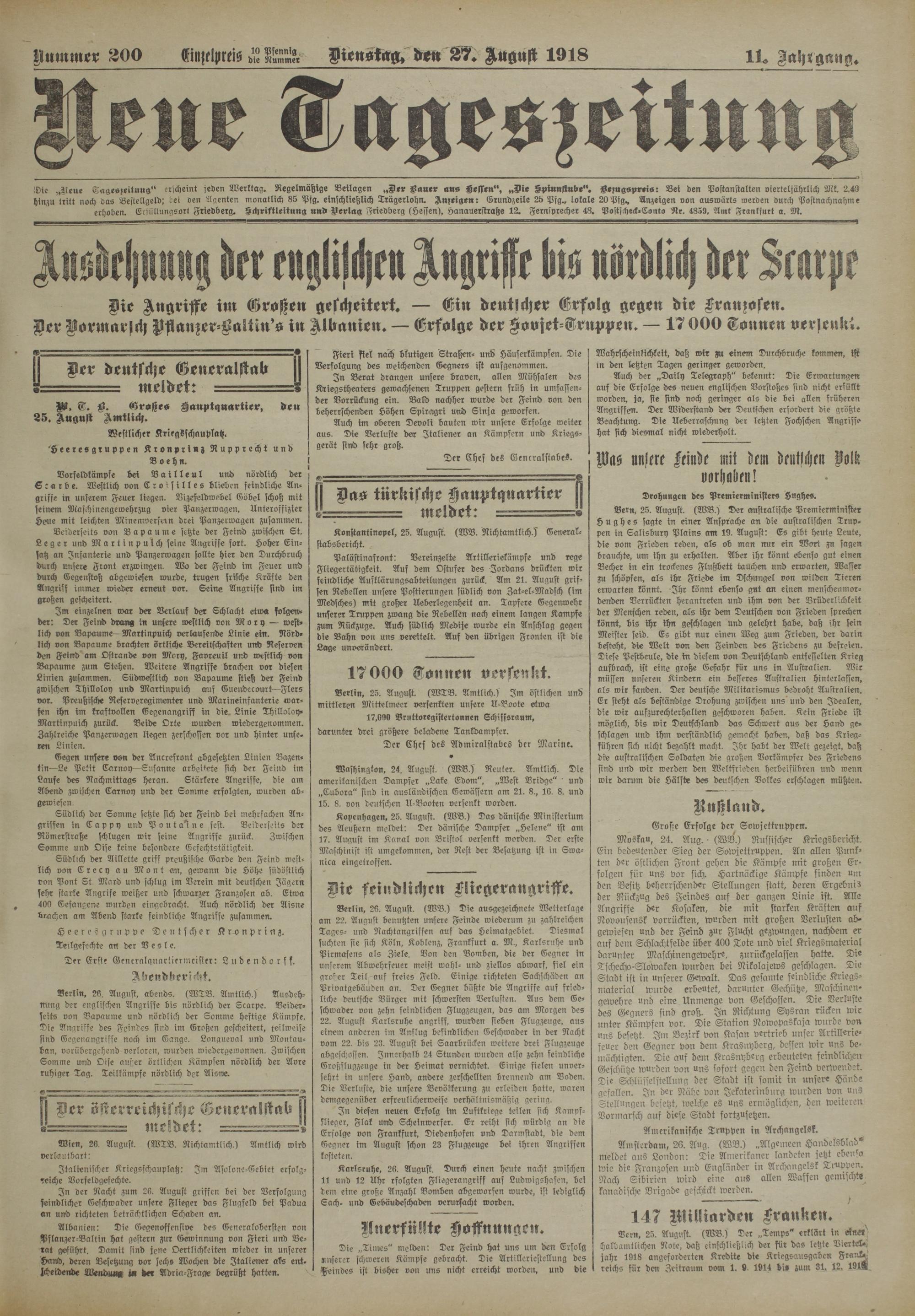 Nummer 300 EiiijchreisLÄr Dienstag, den 2V. August 1918