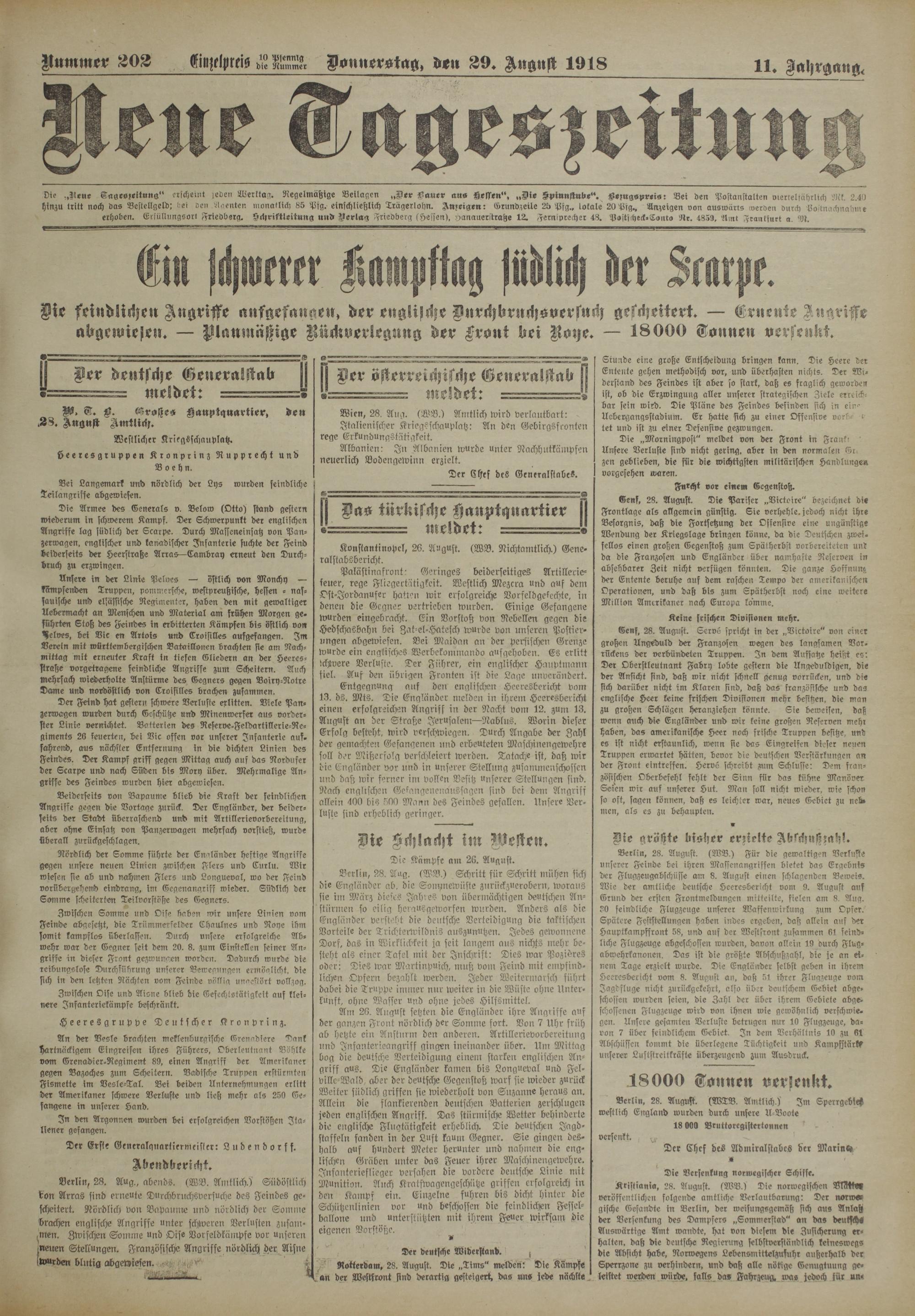 Uitmmer 202 Einstlpreis d,° SZ Donnerstag. den 29. August 1918