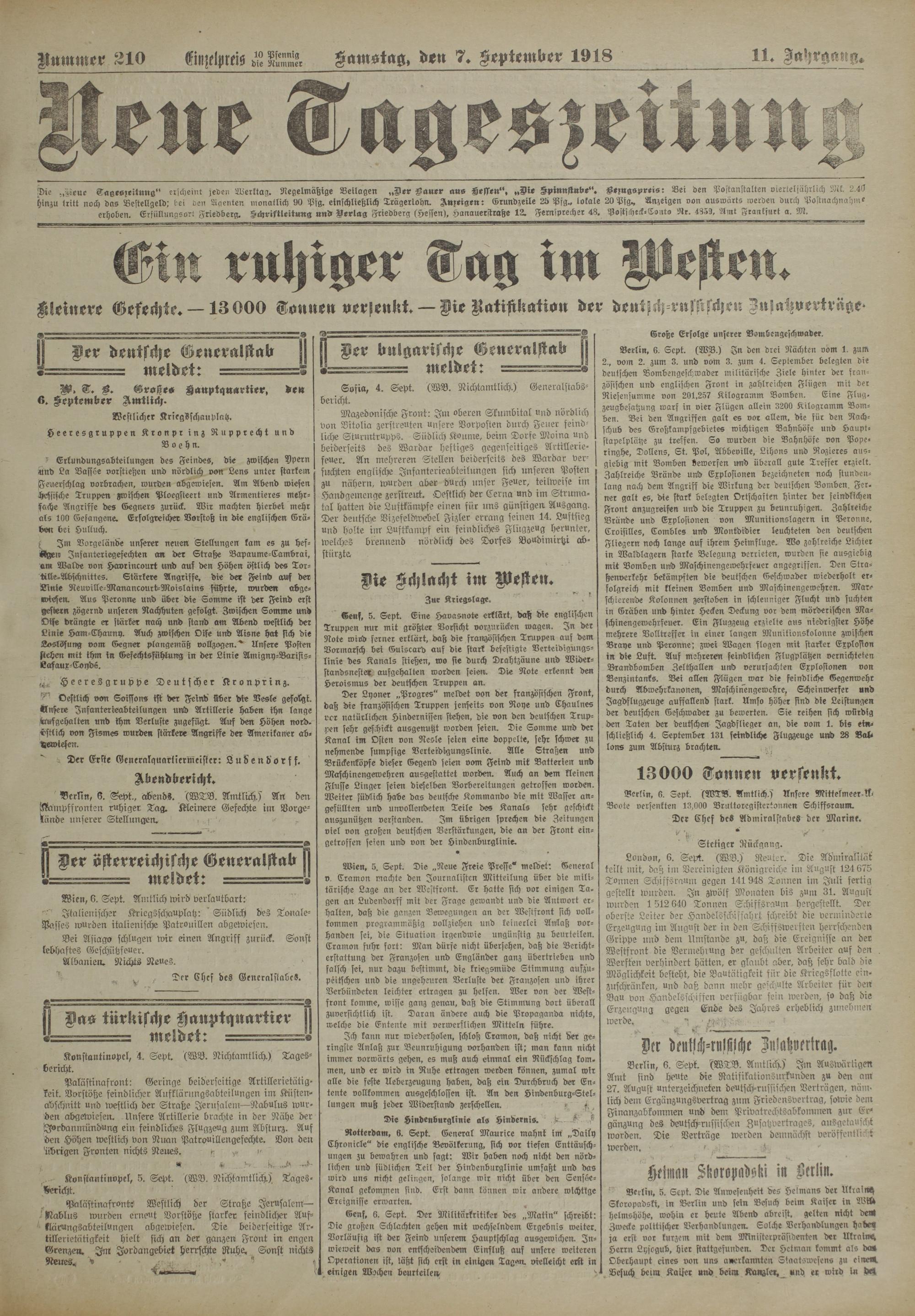 Nummer 310 Einzelpreis LL Samstag, den 7. September 1918 ____ 11. Jahrga ng.