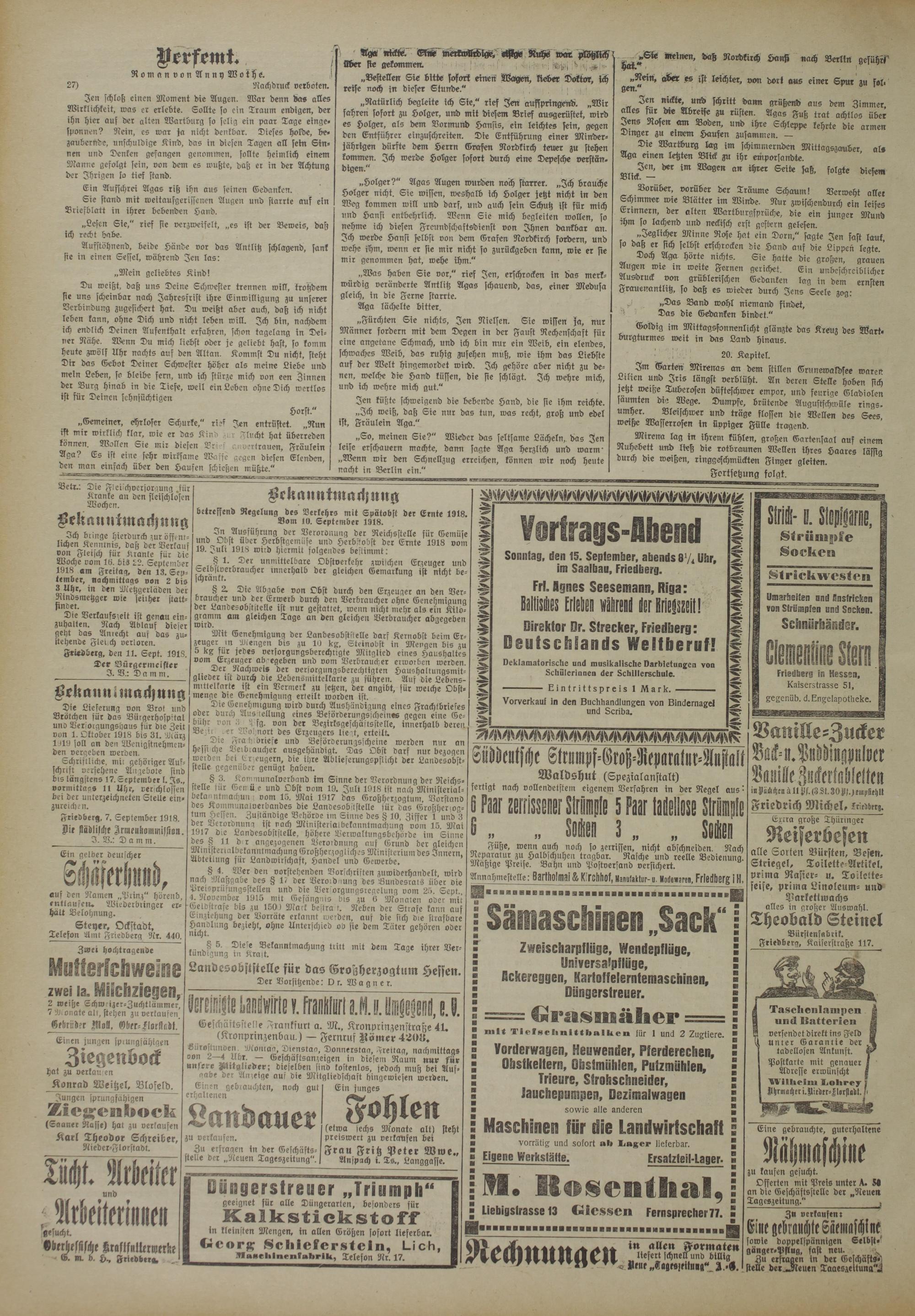Friedberg, 7. September 1918.