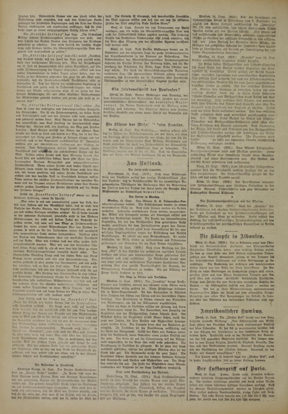 Wien, 15. Sept. (WB.) Dem Wiener Telegraphen- Korrespondenzbureau wird aus Moskau gemeldet: Heute
