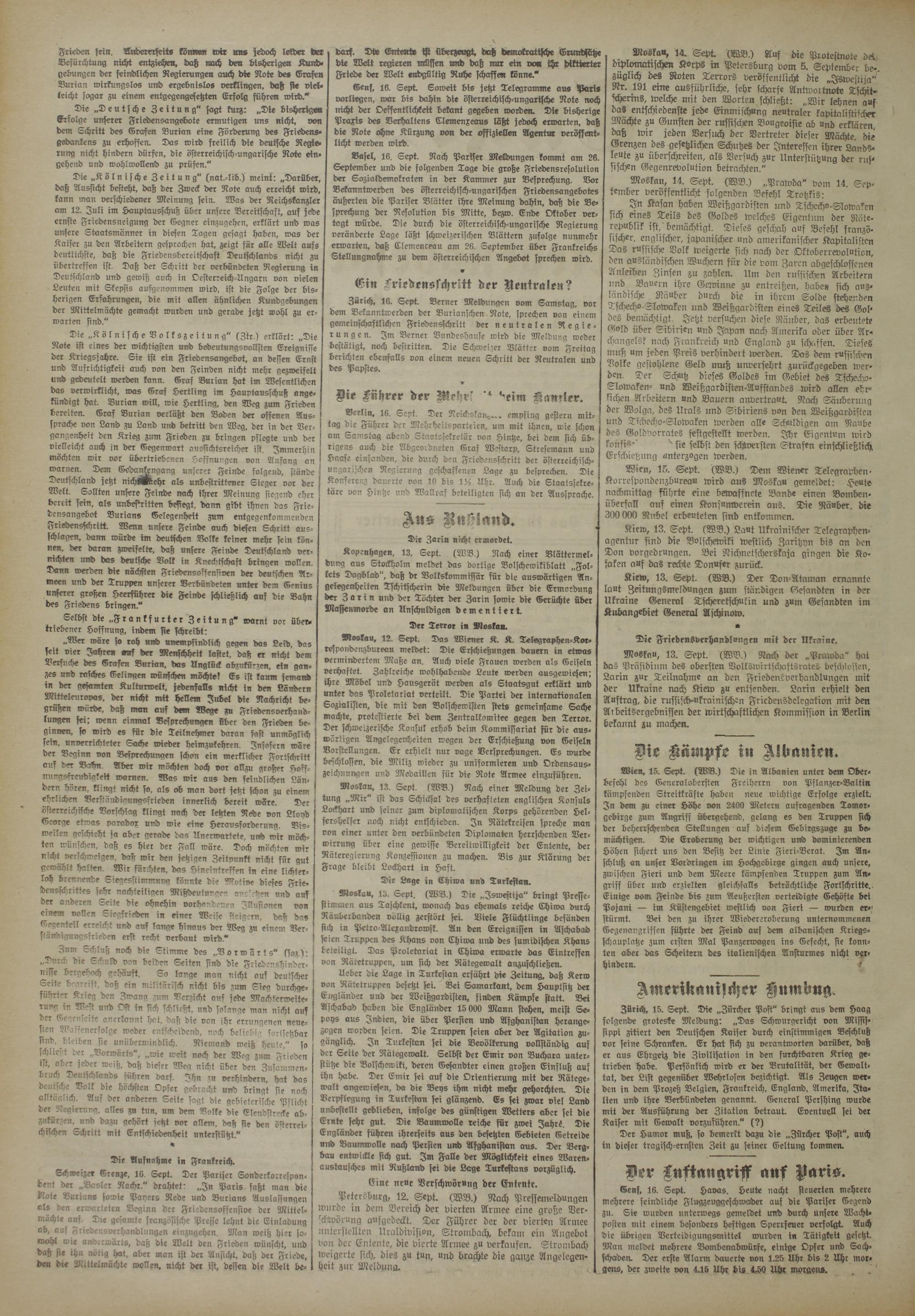 Frieden sein. Andererseits können wir uns jedoch lower der Befürchtung nicht entziehen, daß nach den bisherigen Kundgebungen der feindlichen Regierungen auch die Note der Grafen Durian wirkungslos und ergebnislos verklingen, daß sie vielleicht sogar zu einem entgegengesetzten Erfolg führen wird."