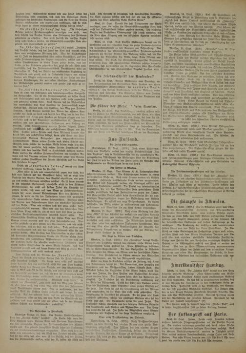 Genf, 16 . Sept. Soweit bis jetzt Telegramme aus Paris vorliegen, war bis dahin die österreichisch-ungarische Note noch nicht der Oeffentlichkett bekant gegeben worden. Die bisherige Praxis des Verhaltens Elemenxeaus laßt jedoch erwarten, daß die Note ohne Kürzung von der offiziellen Agentur veröffentlicht werden wird.