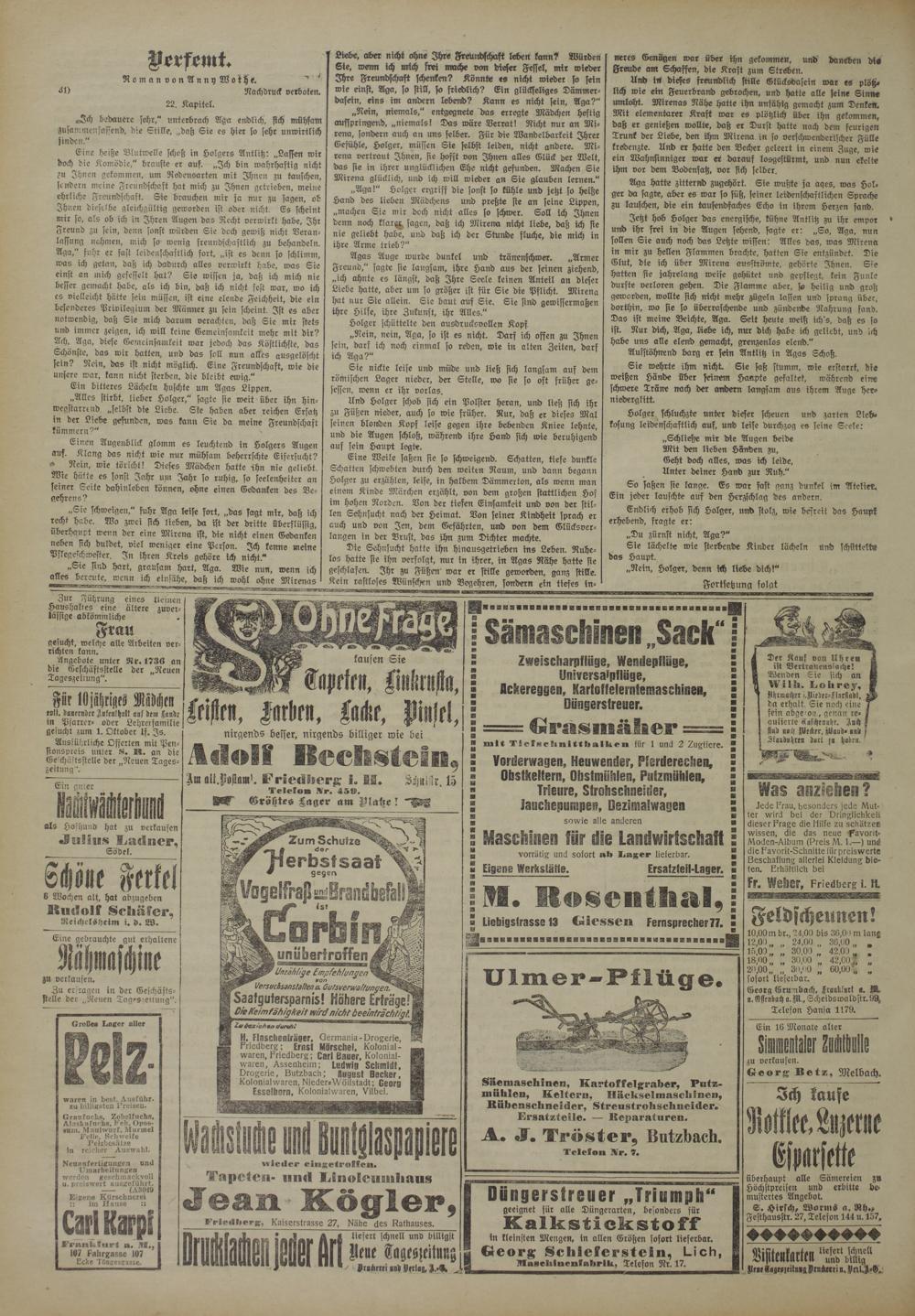 H. Flasclieniräger, Germania-Drogerie, Friedberg; Ernst Mörschei, Kolonialwaren, Friedberg; Carl Bauer, Kolonialwaren, Assenheim; Ludwig Schmidt, Drogerie, Butzbach; Sugust Becker, Kolonialwaren, NiedersWöllstadt; Georg Esselbarn, Kolonialwaren, Vilbel.