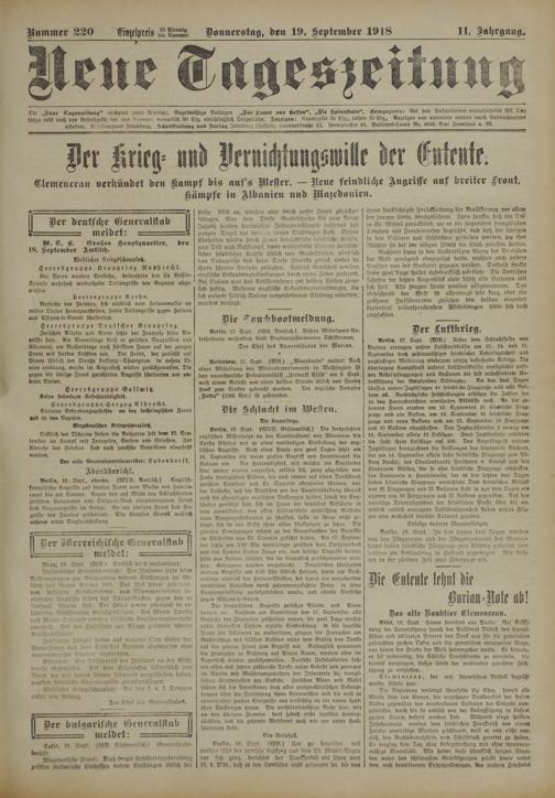 Nummer 2 20 M ychreis b ]° Do nnerslas, den 19. September 1018 _11 Jahrgang.