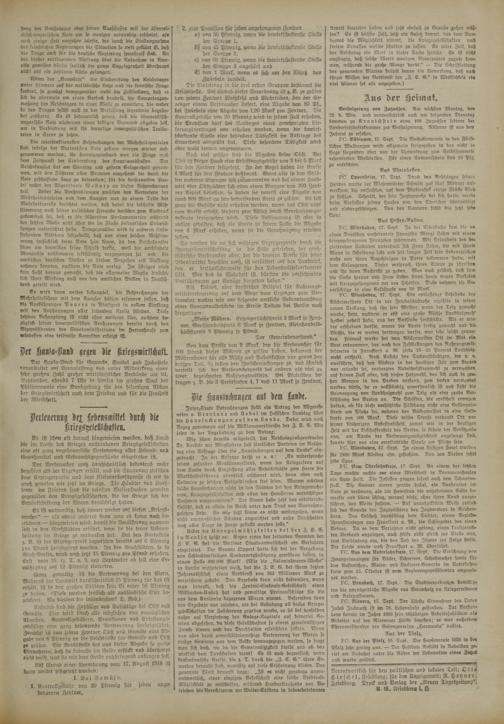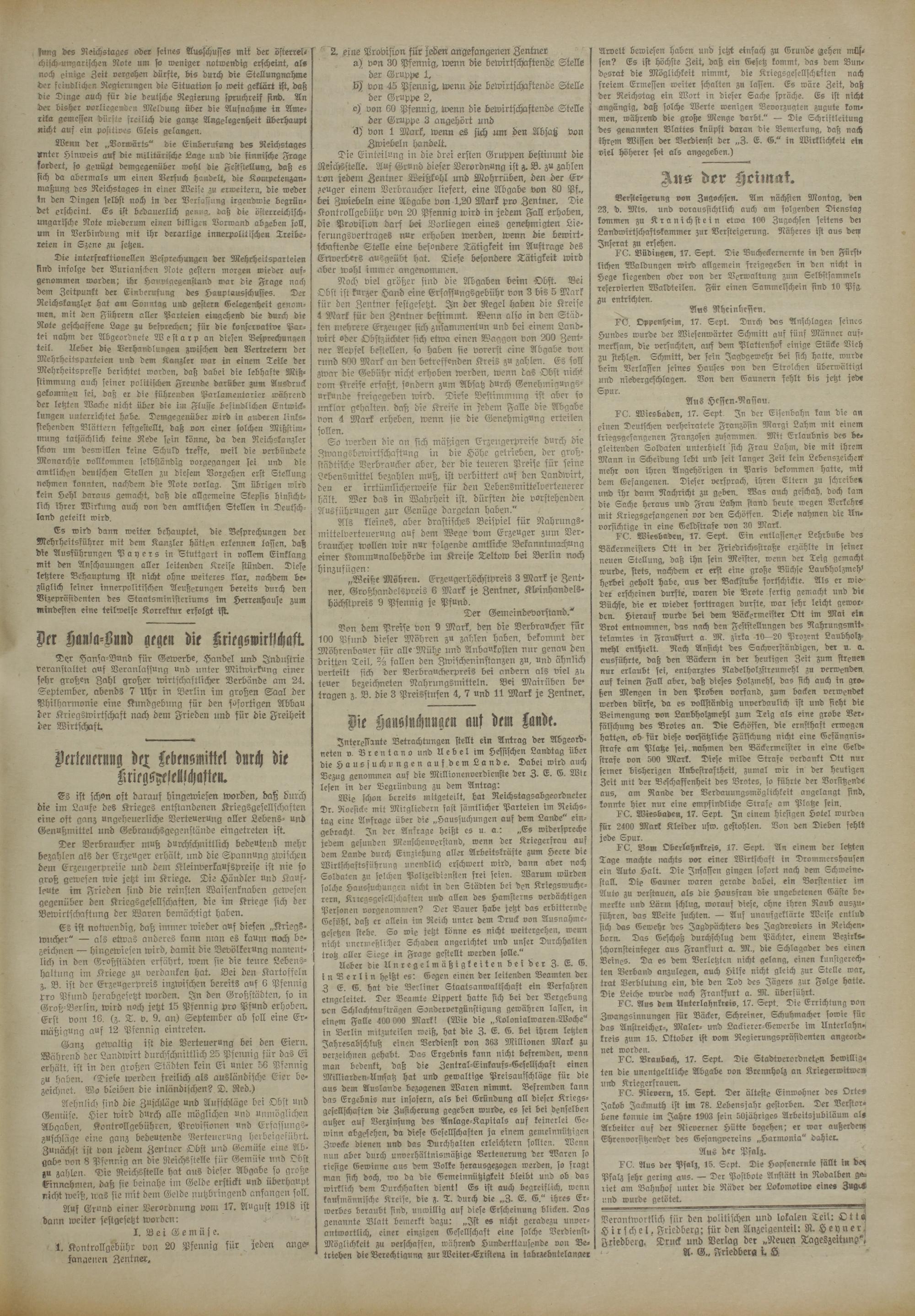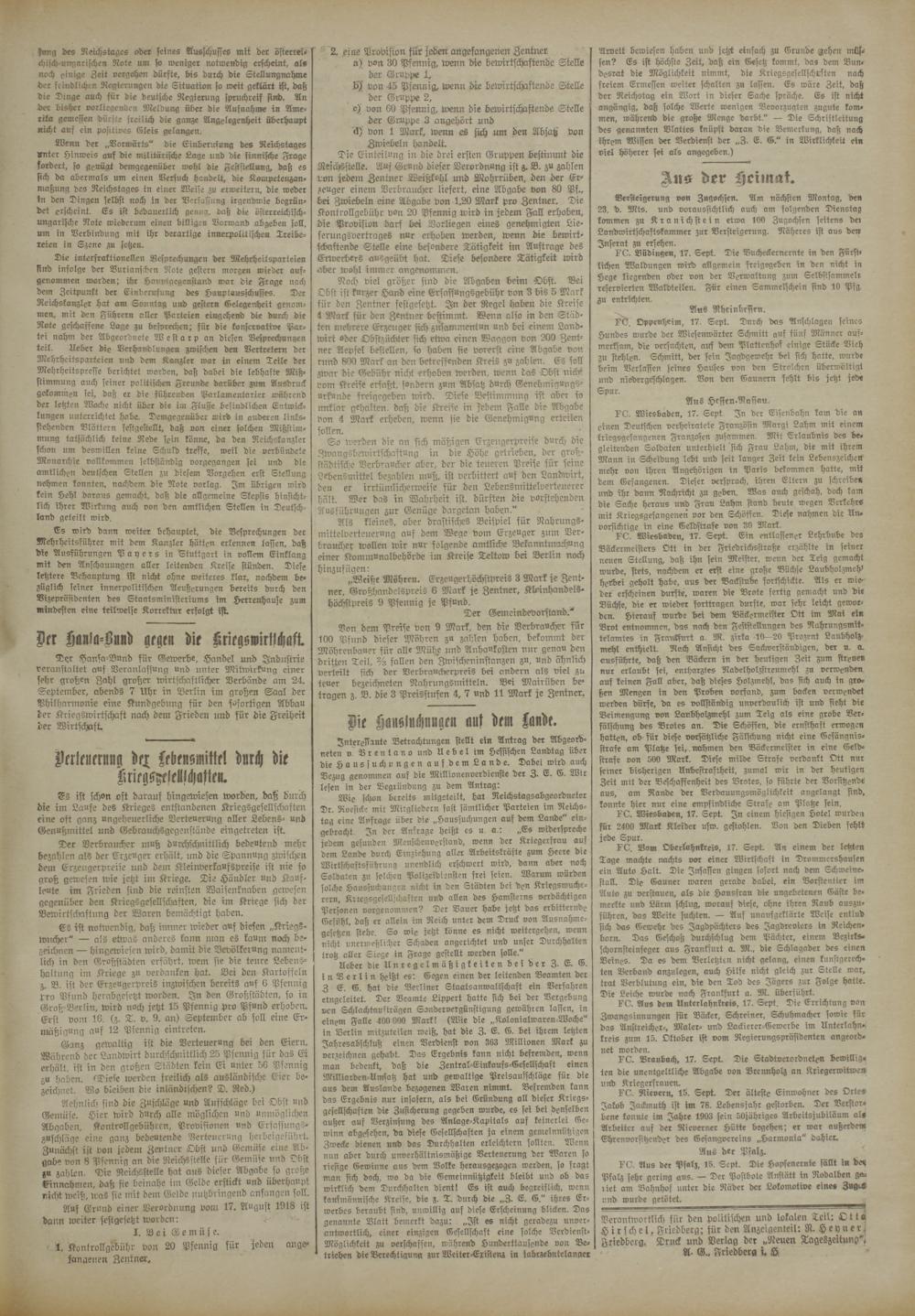 FC. Vraubach, 17. Sept. Die Stadtverordneten bewilligten die unentgeltliche Abgabe von Brennholz an Kriegerwitwe» und Kriegerfrauen.