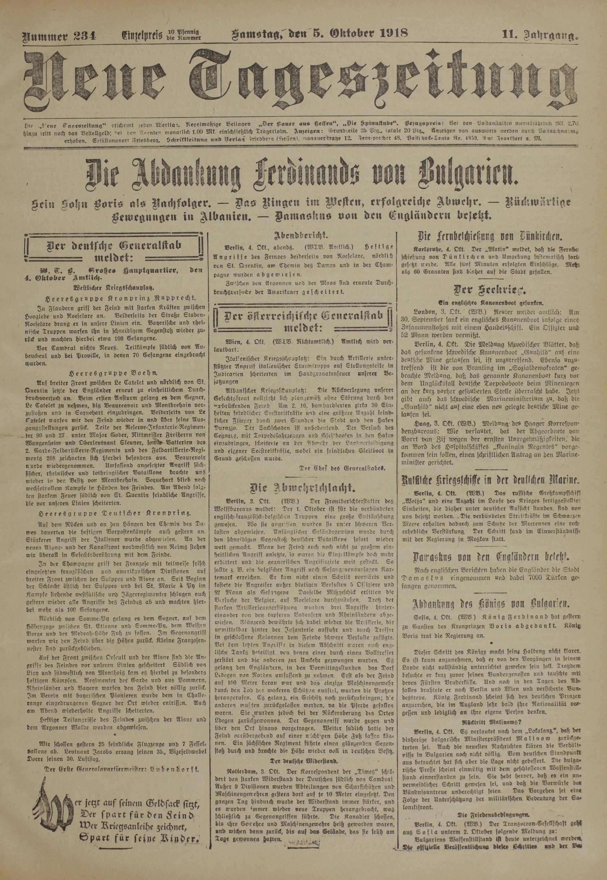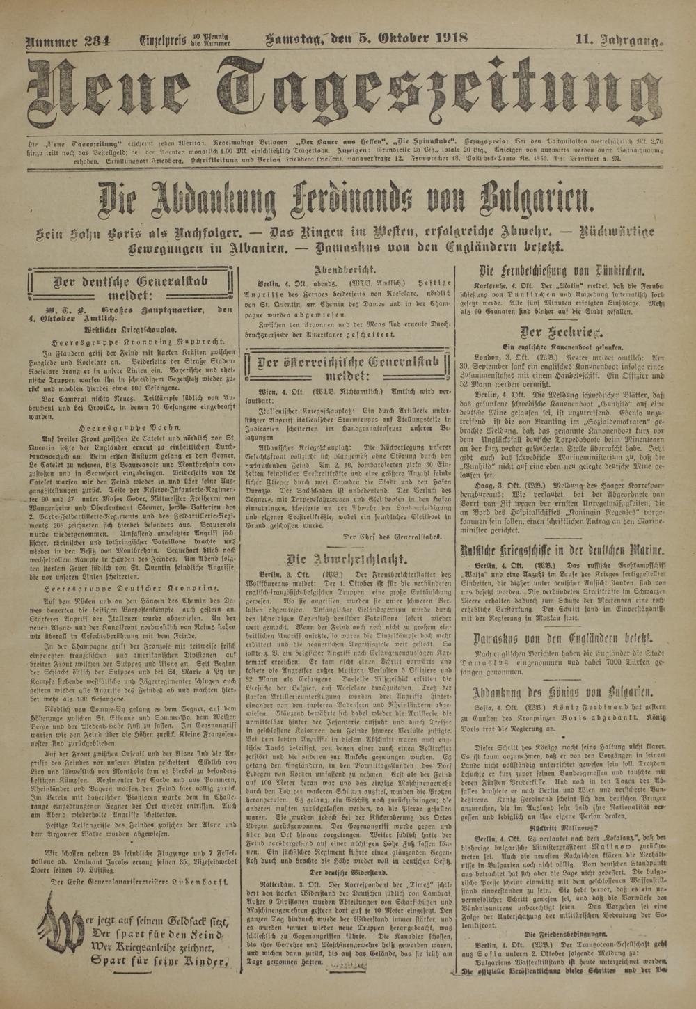 Berlin. 3. Okt. (91323) Der Frontberichterstatter des Wolffbureaus meldet: Der 1. Oktober ist für die verbündeten