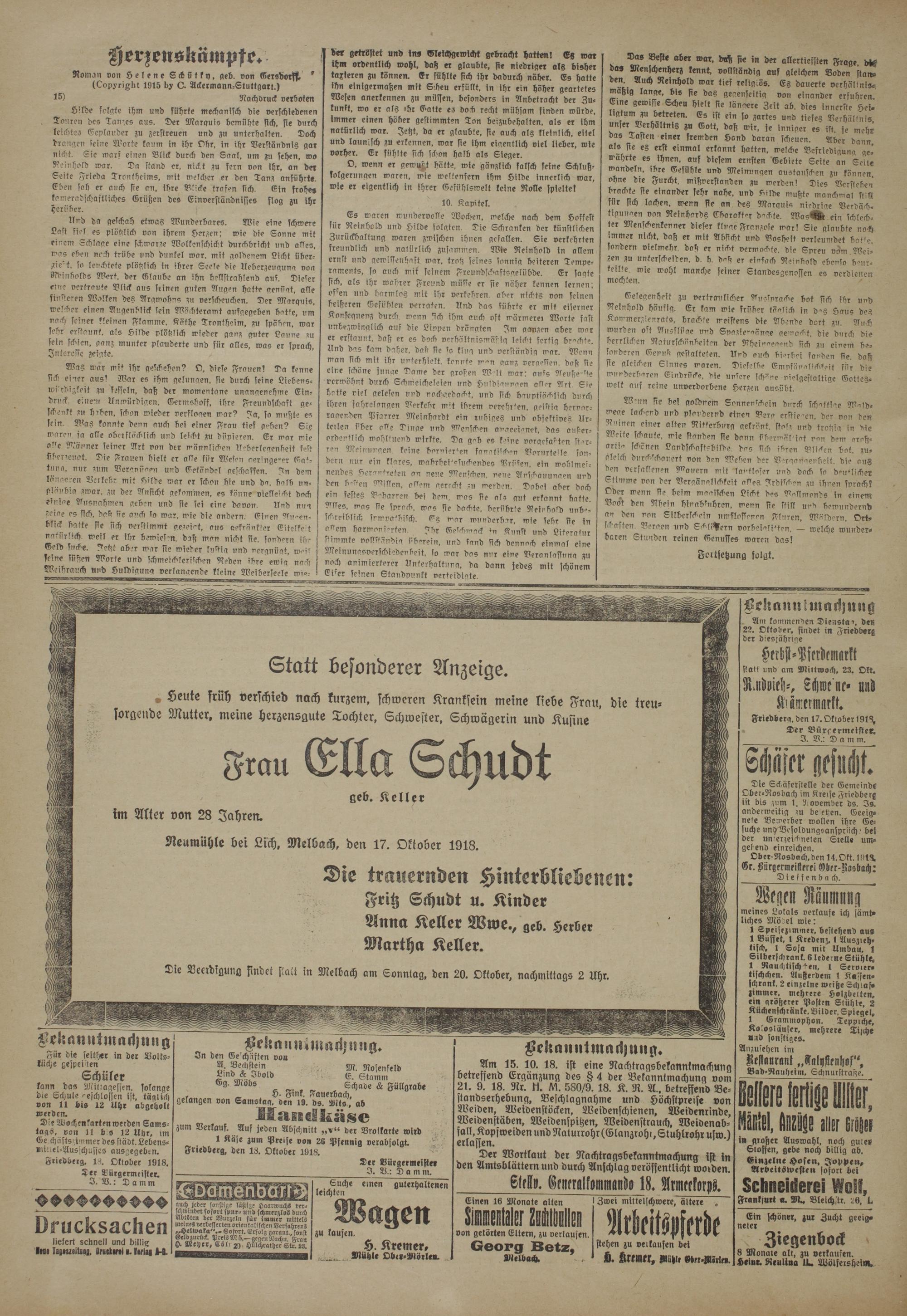 Die Beerdigung findet patt in Melbach am Sonntag, den 20. Oktober, nachmittags 2 Uhr.