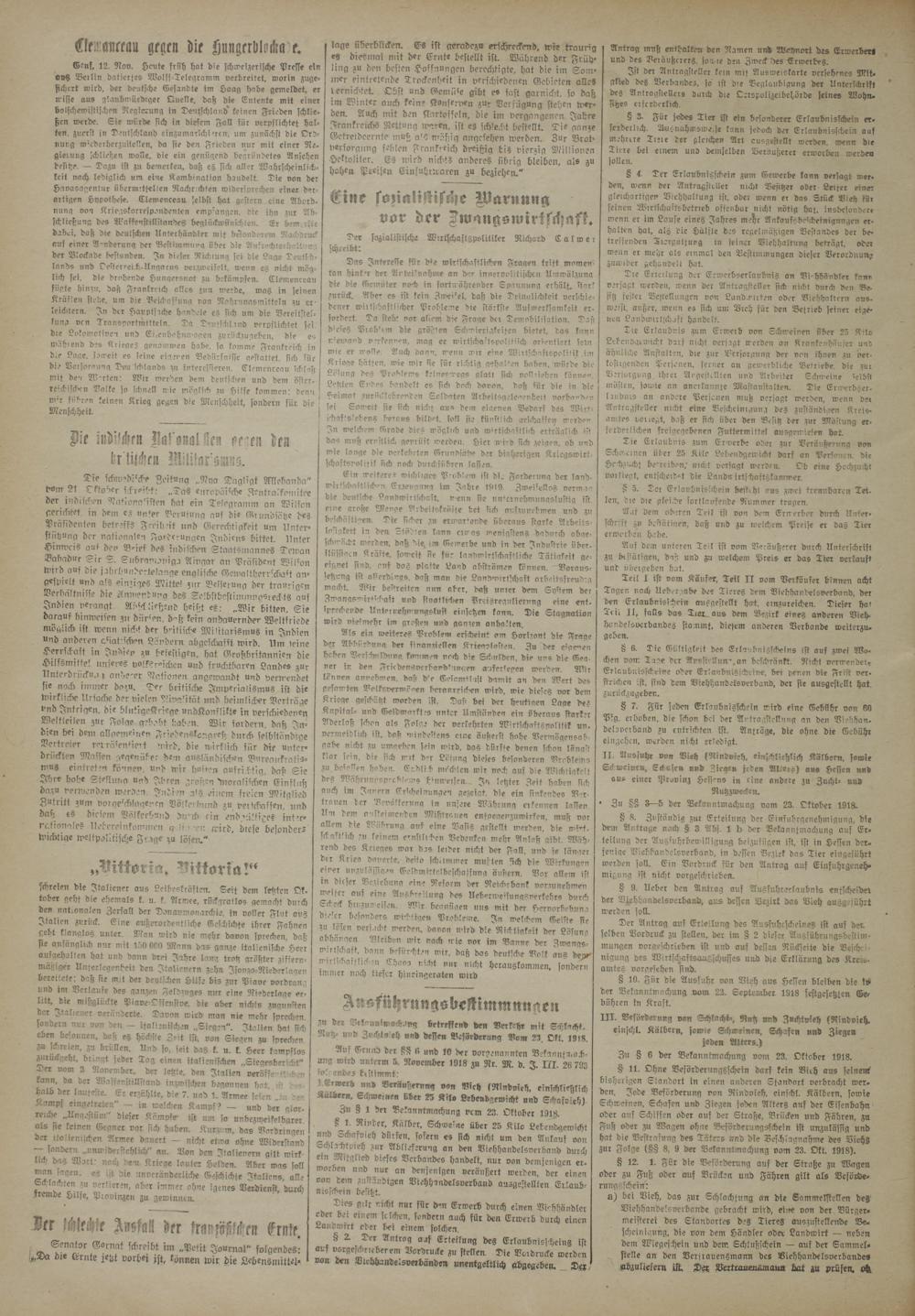 Zu § 6 der Bekanntmachung vom 23. Oktober 1918.
