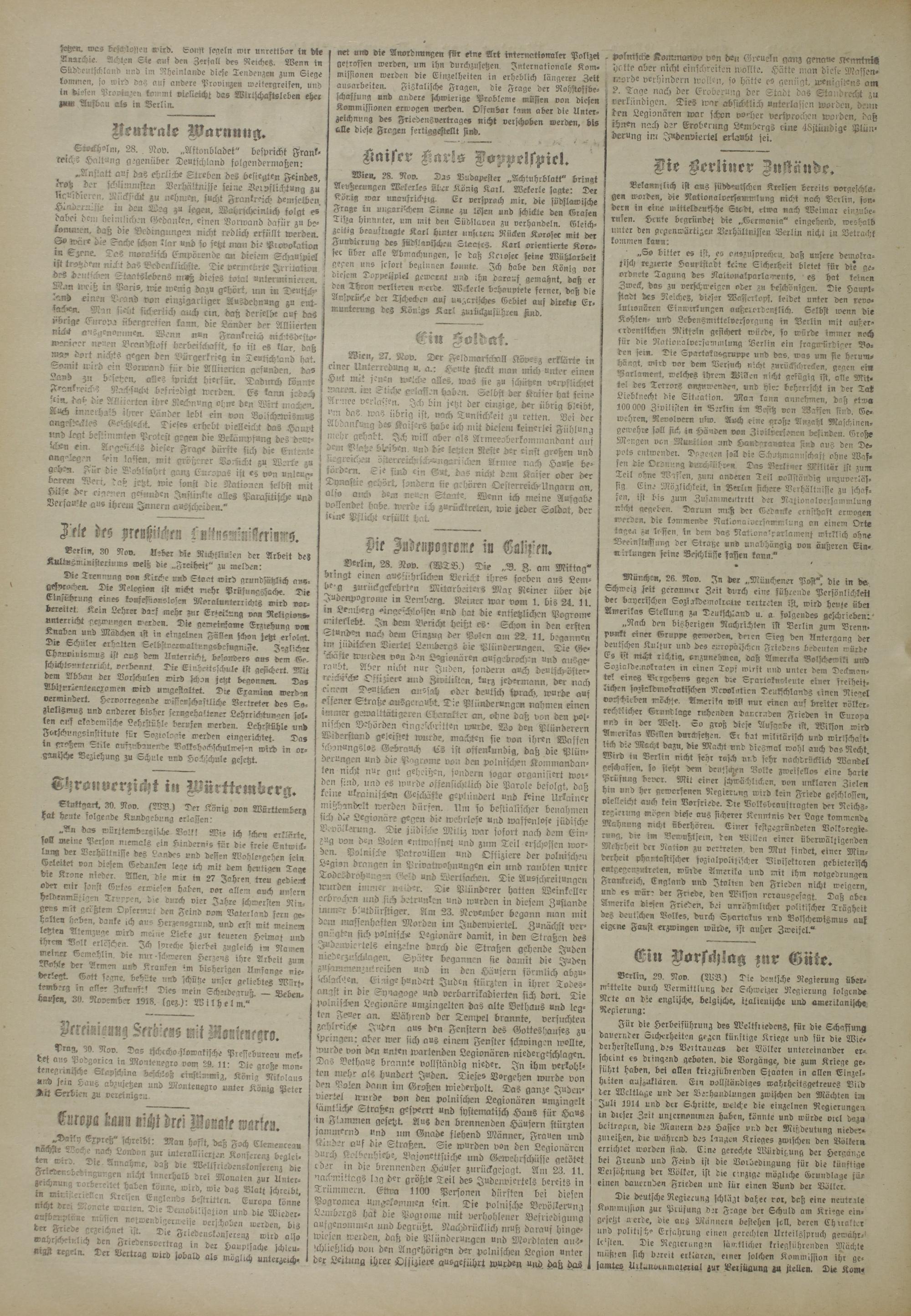 Ua L^ anhn im mt>iÜsen Umfange nie. TkS, U *™ b '%7 tt mi ^ütz- unser geliebtes Wärt- t*f** in cff?T Zukunft! Dies mein Scherdegruß. - Beben- Haufen, 30. November 1918. sgez.): Wilhelm."