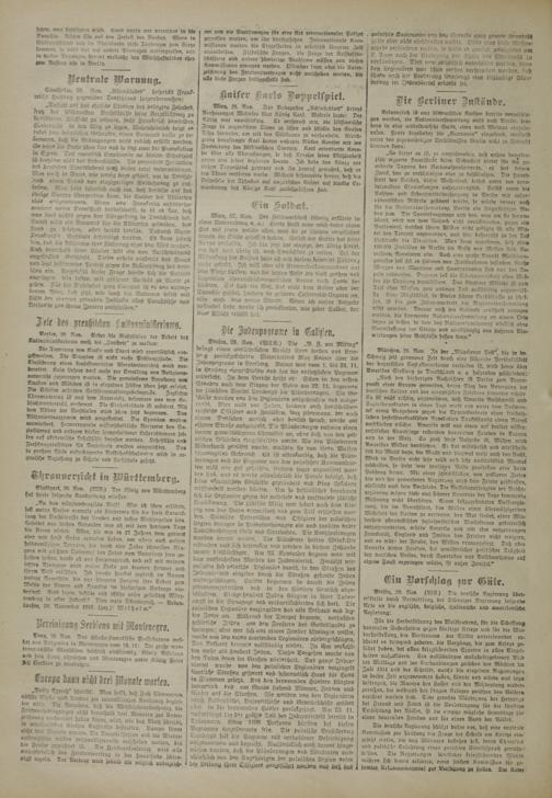 Berlin, 29. Nov. (WB.) Die deutsche Negierung übermittelte durch Vermittlung der Schweizer Negierung folgende Ncte an die englische, belgische, italieuijche und amerikanische. Regierung:
