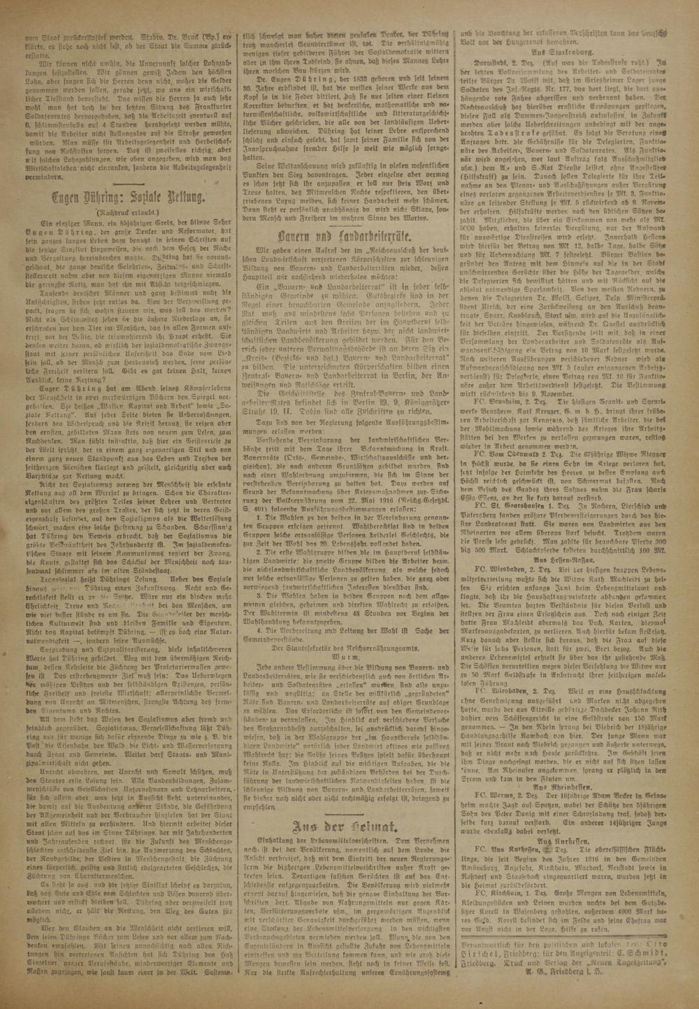 Jede andere Bestimmung über die Bildung von Bauern- und Landarbeiterräten, wie sie verschiedentlich auch von örtlichen Ar- beiter» und Svldatenräten ..erlasien" wurden sind also unzulässig und ungültig: an Stelle der willkürlich ..gegründeten"