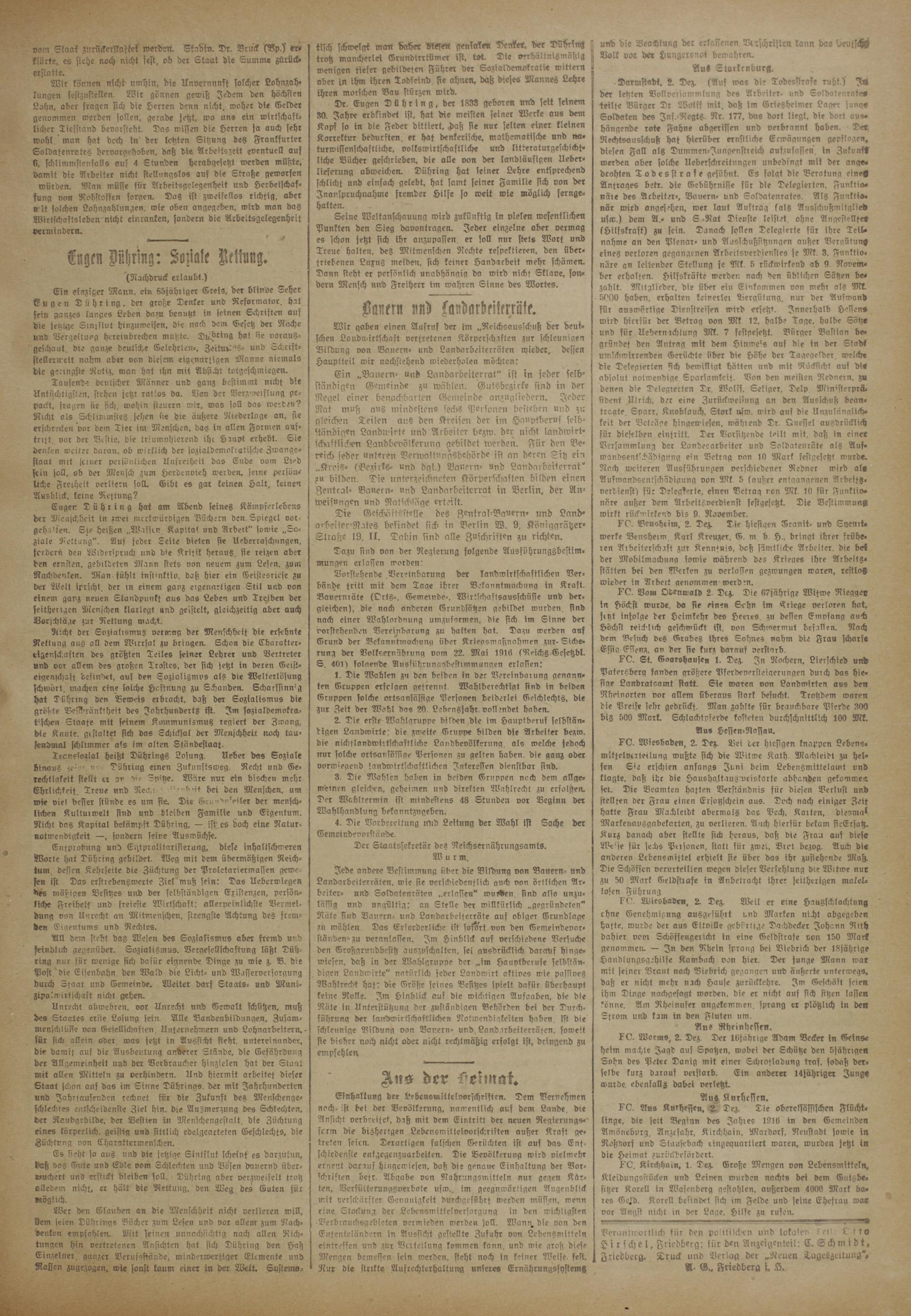 Perontlvortlich für den polltiick^n und lokalen 5eil: C tto Hirsche!, Friedberg: für den Anzeigenteil: E. Schmidt, Friedborg. Truck und Verlag der „Neuen TugeözeltungE, «. G.. Friedberg i, Ä.