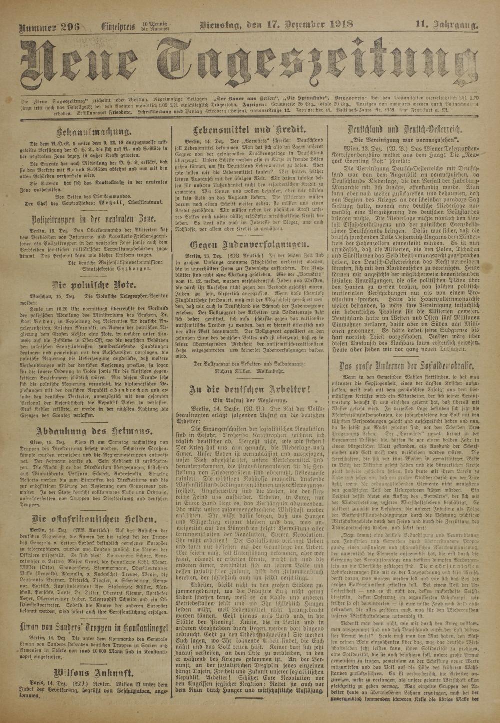 Berlin, 16. Dez. Das Oberkommando der Alliierten hat dem Verbleiben von Infanterie- und Kavallerie-Friedensgarni. sonen als Polizeitruppen in der neutralen Zone sowie auch dem Verbleiben sämtlicher militärischer Verwaltungsbehörden zuge- stimmt. Das Personal kairn wie bisher Uniform tragen.