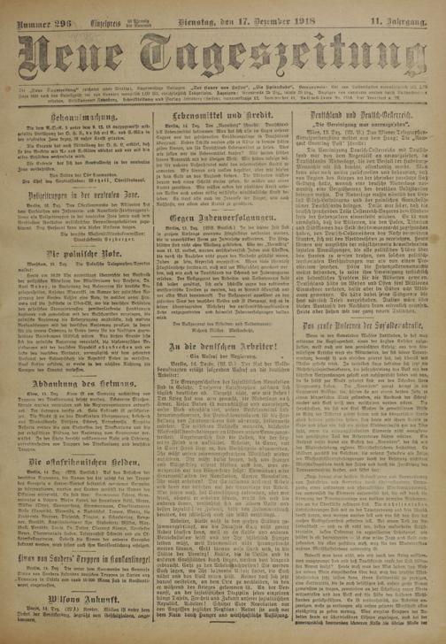 Kiew. 15. Dez. Kiew ist am Samstag nachmittag von Truppen des Direktoriums beseht worden. Schwerere Straßen, kämpfe wurden vermieden und die Regierunqstruppen entmannet. Der Hetmann dankte ab. Sein Kabinett ist zurückgetreten. Die Macht ist an das Direktorium übergeganaen, bestehend autz Winnitscbeuko. Pstljvra. Schweiz, Andrejewsky. Einzelne Restarts werden küs zum Eintreffen des Direktoriums und bis zur endgültigen Bildung der Regierung vom Gouverneur verwaltet In der Stadt herrscht vollkommene Ruhe und Ordnung, ouirechterhalten von Truppen des Direktoriums und deutschen Truppen.