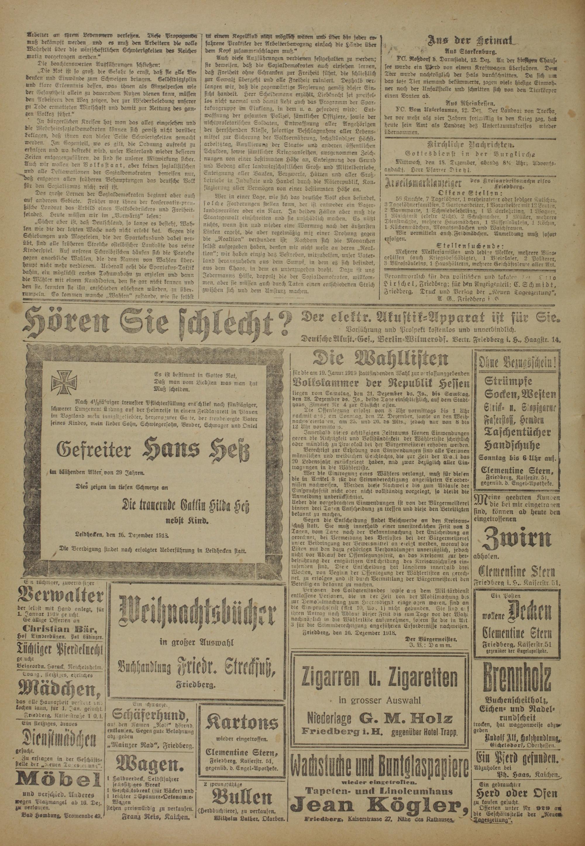 Friedberg, den 10. Dezember 1918.