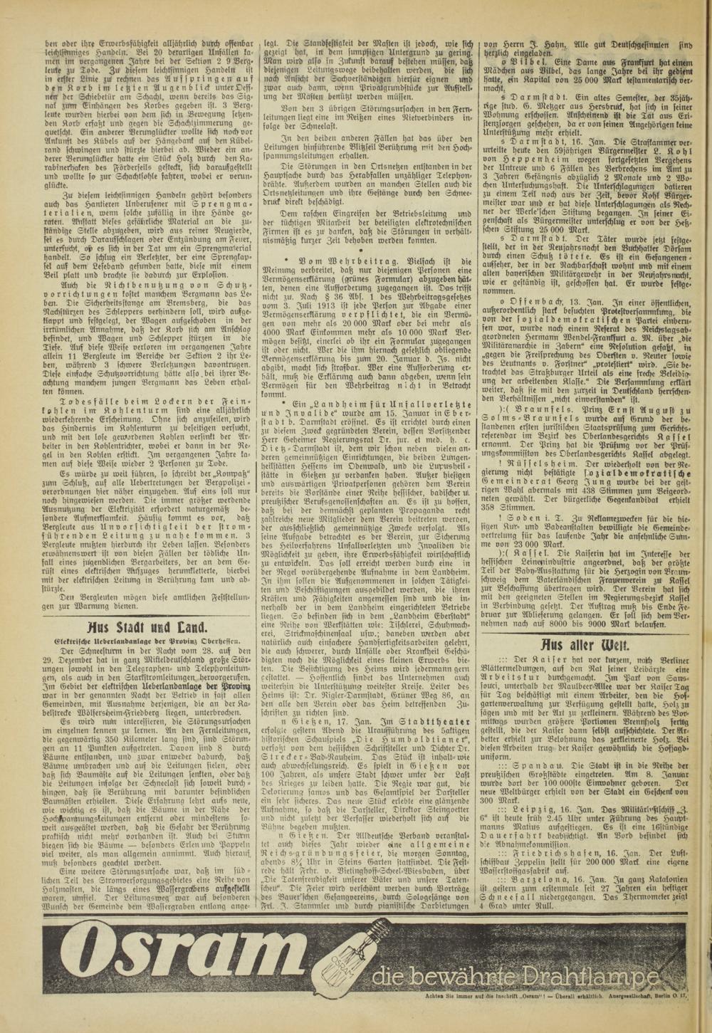 ::: Friedrichshasen, 16. Jan. Der Luftschiffbau Zeppelin stellt für 200 000 Mack eine eigene Wafferstoffgassabrik auf.
