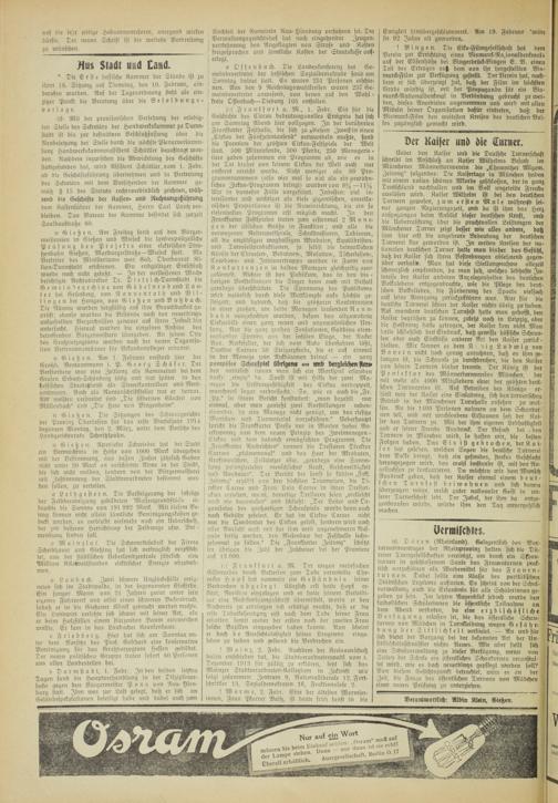 lieber den Kaiser und die Deutsche Turnerschaft schreibt im Anschluß an Kaiser Wilhelms Besuch im Münchener Männerturnverein di« „Chemnitzer Mlgem. Zeitung" folgendes: Die Kaisertage in München haben mit einem vollen schönen Akkorde geschlossen, der in ganz Deutschland nachhallen und im Volk ungeteilte Freude auslösen wird. Kaiser Wilhelm ist bei den deutschen Turnern gewesen, zum ersten Male während seiner ganzen Regierungszeit, und da ist ihm das Herz aufoegangen beim Anblick dieser deutschen Kraft, und die Ueberraschung über die prachtvollen Leistungen der Münchener Turner zeigt beffer wie alles andere, datz ihm hier erst die ungeheure Bedeutting der deutschen Turnerei klar geworden ist. In weiten Kreisen der nationale» deutschen Turner hatte man bisher das Gefühl, dah der Kaiser sich ihren Bestrebungen ablehnend gegenüber verhalt«. Man hat diese Stellungnahme allezeit schmerzlich empsunden, da man sah, welches lebhafte Interesse der Kaiser anderen Angelegenheiten des deutschen Volkslebens ciitgegenbrachte, wie die Pflege des deutschen Volksliedes, die Förderung des Sports vielfach auf seine Anregung zurückzufüihren war. Nur für die deutsche Turnerei schien der Kaiser nichts übrig zw haben. Auf manchem deutschen Turnfest hatte man gehofft, den Kaiser begrüßen zu können, zuletzt noch in Leipzig, aber die Hoffnung batte getrogen, der Kaiser kam nicht'. Man hatte schließlich de» Eindruck, datz gewiffe höfische Schranken oder auch Einflüsse anderer Art den Kaiser zurück- hielten. Wir können es dem K nig Ludwig von Bayern nicht hoch genug anrechnen, datz es ihm gelungen ist, die Schranke zu durchbrrckien, die den Kaiser von seinen Turnern bisher lreimte. Der König jft ber Protektor des Männerturnvereins München, der mit mehr als 4000 Mitgliedern einer der grötzten deutschen Turnvereine ist. Auf Betreiben des Königs erhielt nun der Kaiser eine Einladung, sich den tnrnerisckien Betrieb in der Münchener Turnhalle ansehen zu wollen. An die 1400 Personen nahmen an dem Schauturnen teil, und mit wachsendem Erstaunen sah der Kaiser den Turnern zu. Mit der ihm eigenen Lebhaftigkeit gab er seiner Freude Ausdruck. Der Besuch bei -den Turnern in München wird, so hoffen wir, die besten Folgen haben. Das Eis i ft gebrochen, der K a i- . i e r bat gesehen, welchen Segen die deutsche Turnerei dem Volke bringt, datz ein gesundes, starkes Geschlecht herangezogen wird, das wohl imstande ist, mit den Angelsachsen zu konkurrieren. Da möchten wir dem Wunsch Ausdruck geben, daß der Kaiser einmal einem deutschen Turnfest beiwohnen und sich davon überzeugen möge, welch guter nattonaler Geist in unserer Turnerschaft lebt. Der Jubel, der ihm da entge- genbrausen würde, würde ihm den Tag unvergeßlich machen.