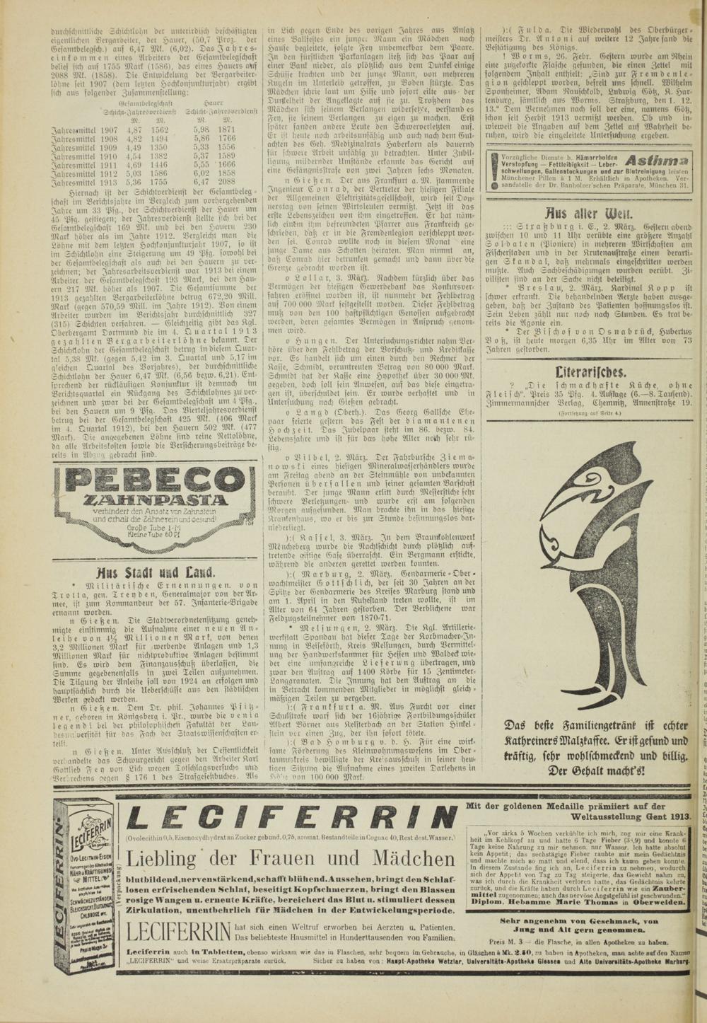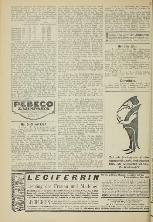„Vor zirka 5 Wochen verkühlte ich mich, zog mir eine Krankheit im Kehlkopf zu und hatte 6 Tage Fieber (3-i,9) und konnte G Tage keine Nahrung zu mir nehmen, nur Wasser. Ich hatte absolut kein Appetit; das sechstägige Fieber raubte mir mein Gedächtnis und machte mich so matt und elend, dass ich kaum gehen konnte, ln diesem Zustande fing ich an, Leciferrin zu nehmen, wodurch sich der Appetit von Tag zu Tag steigerte, das Gewicht nahm zu, was ich durch die Krankheit verloren hatte, das Gedächtnis kehrte zurück, und die Kräfte haben durch Leciferrin wie ein Zauber- mittel zugenommen; auch das nervöse Angstgefühl ist geschwunden.“ Diplom. Hebamme Marie Thomas in Oberweiden.