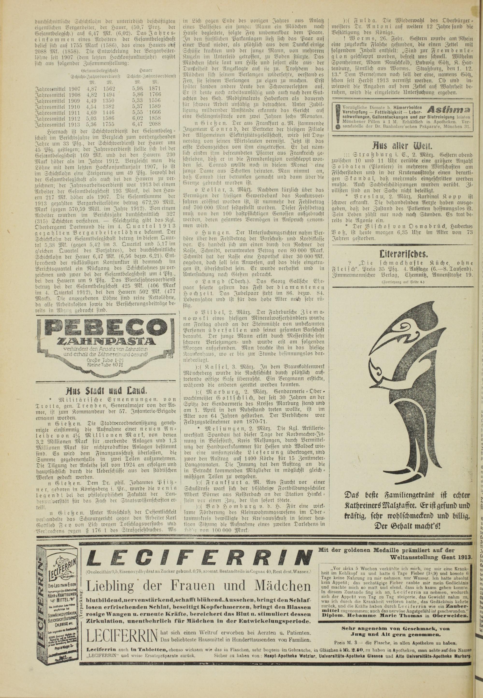 ):( Kassel, 3. März. In dem Braunkochlenwerk Müncheberg wurde die Nachtschicht durch plötzlich auf- tretende giftige Gase überrascht. Ein Bergmann erstickte, während die anderen gerettet werden konnten.