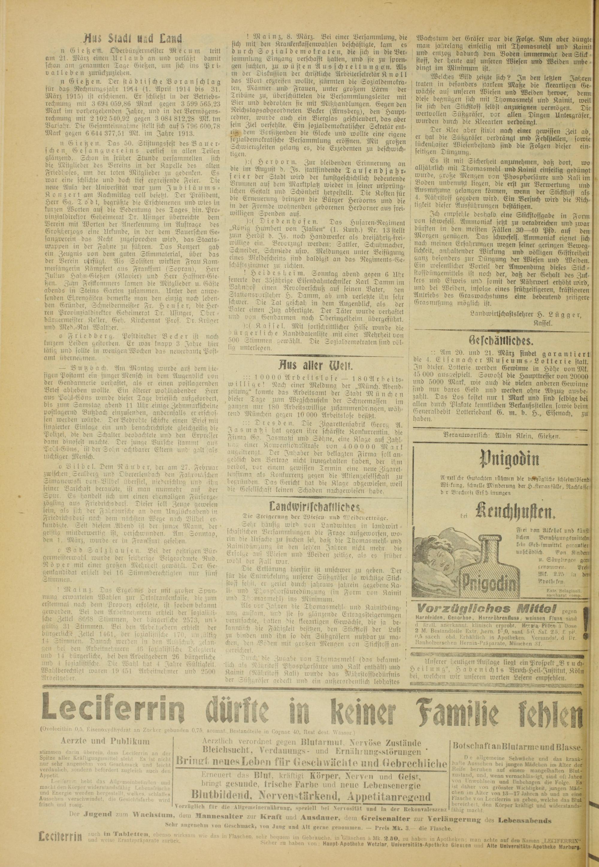 Verantwortlich: Albin Klein. Gießen.