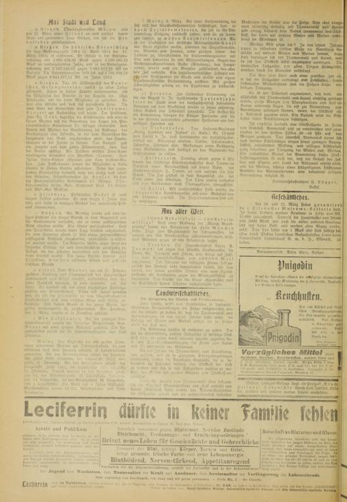 v.; das in Flaschen, sehr bequem im Gebrauche, in'Gläschen !t Mk. 2.50, zu haben in Ajiotheken: man achte auf den Namen „LECIFERRIN“ Sicher zu haben von; Haupt-Apotheke Wetzlar. Universitäts-Apotheke Glessen und Alte Universitäts-Apotheke Marburg. 3