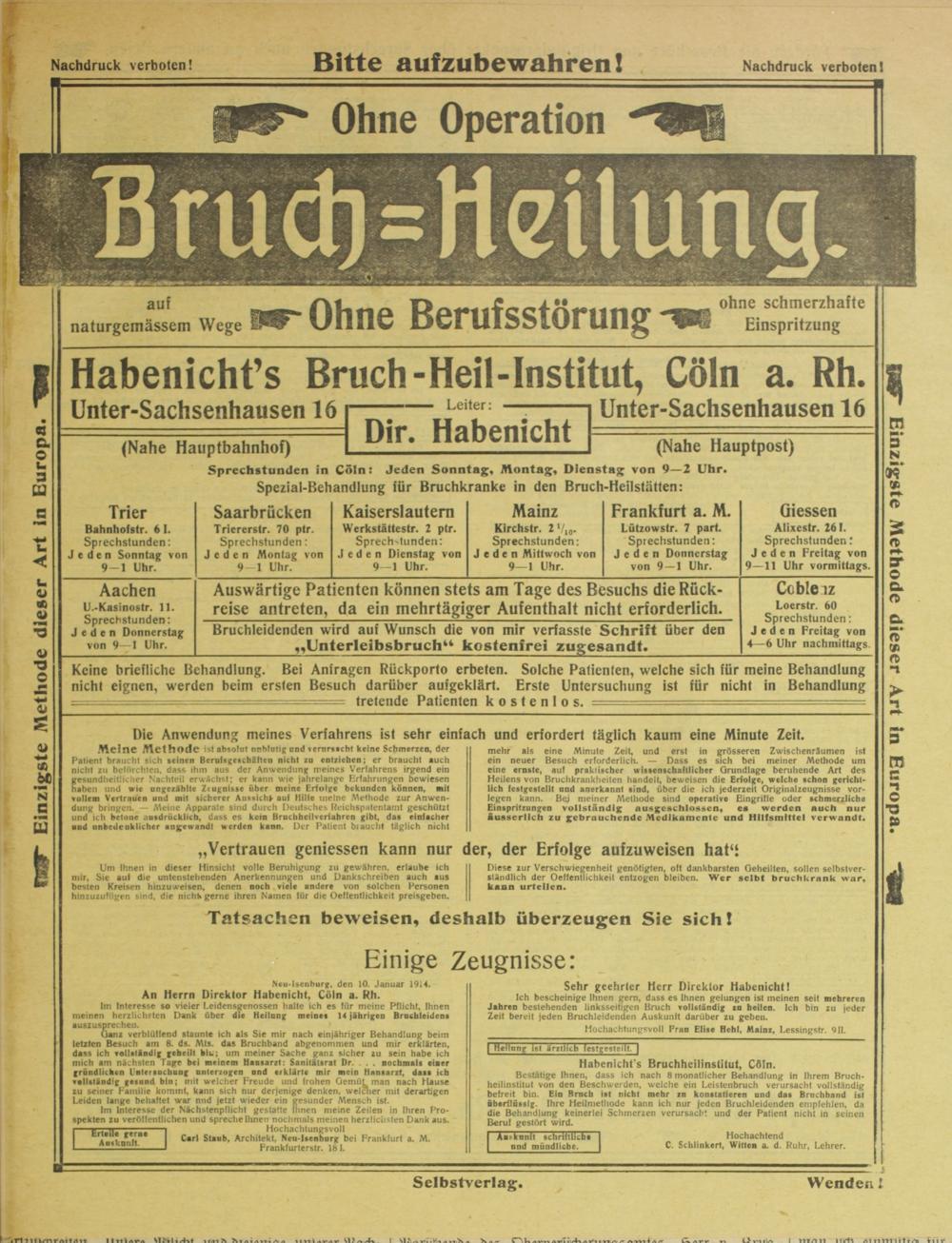Habenicht’s Bruch-Heil-Institut, Cöln a. Rh.
