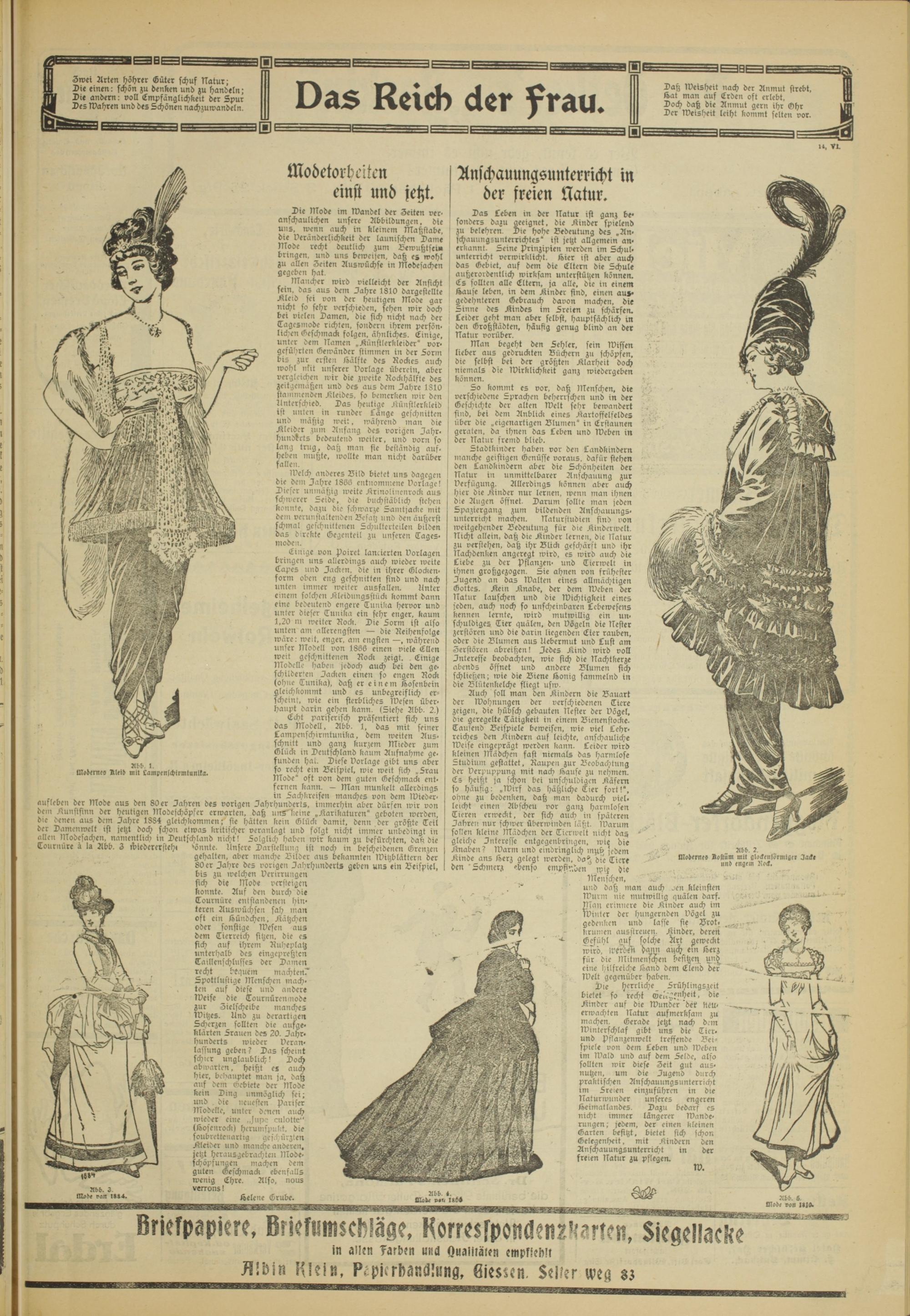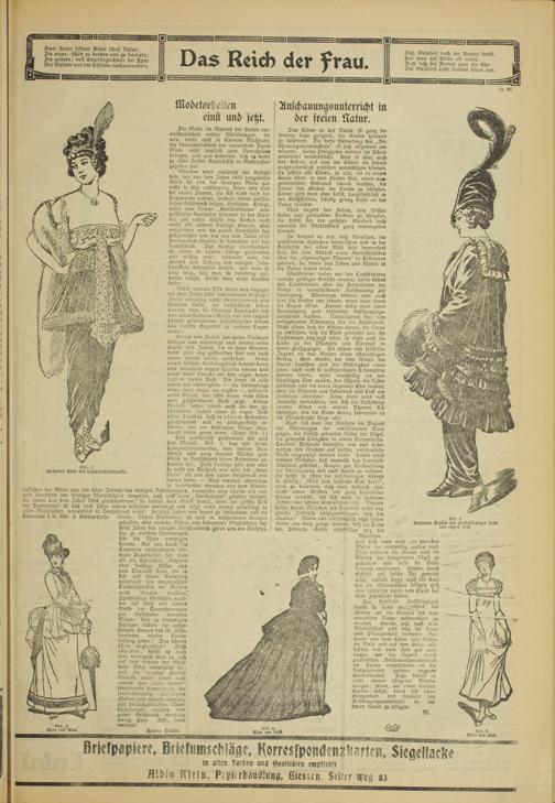 Die Mode im Wandel der Zeiten vec- anschaulichen unsere Abbildungen, die uns, wenn auch in kleinem Matzstabe, die Veränderlichkeit der launischen Dame Mode recht deutlich zum Bewußtsein bringen, und uns beweisen, daß cs wohl zu alle» Zeiten Auswüchse in Modcsachcn gegeben hat.