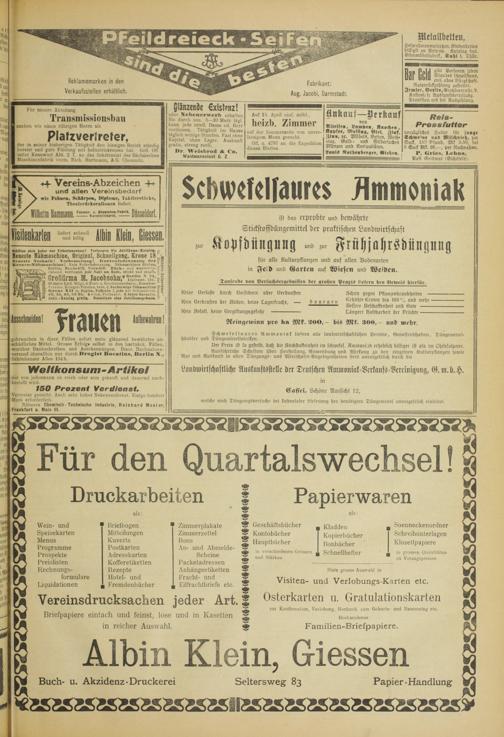 Der Breis ist so gestellt, üast die Stichstaffriichkil im schwekes. Ammoniah erheblich billiger ist als im djilpfalprlrr. Ausführliche Schriften über Herstellung, Anwendung und Wirkung zu den einzelnen Kulturpflanzen sowie Rai und Auskunft in allen Diingungs- und Wirtschafts-Angelegenheiten stets unentgeltlich durch die