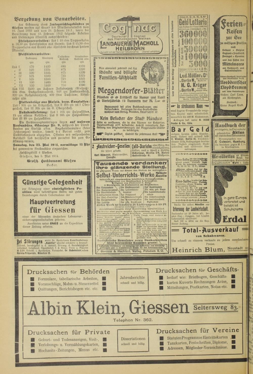 Samstag, den 23. Mai 1914, vormittags 11 Uhr