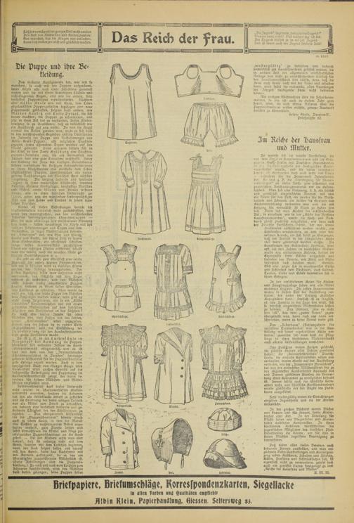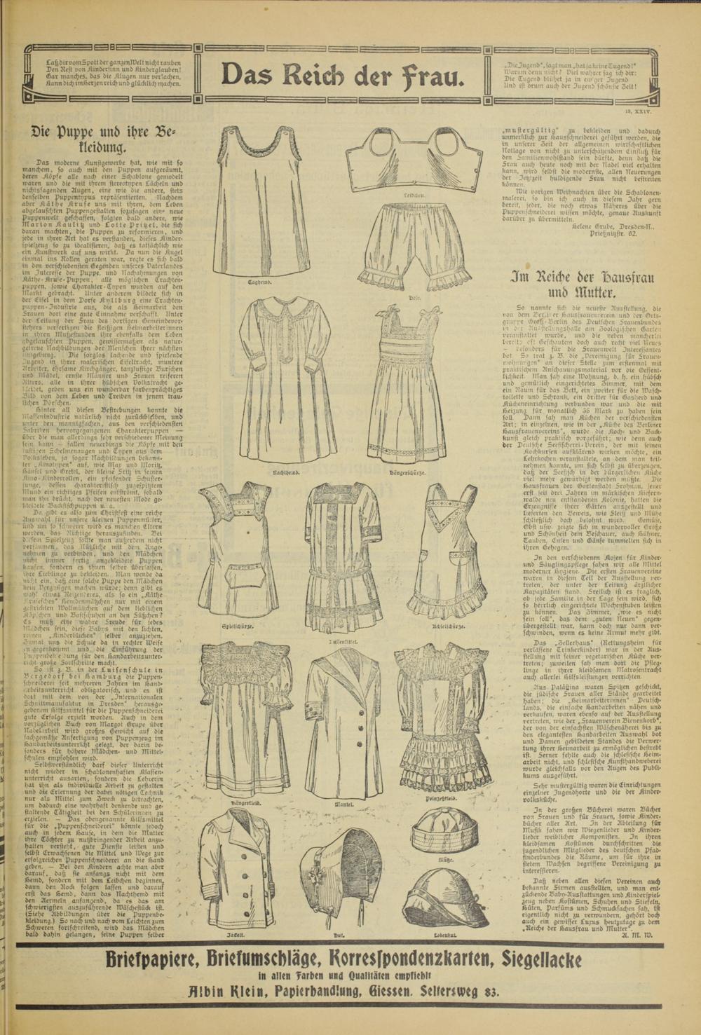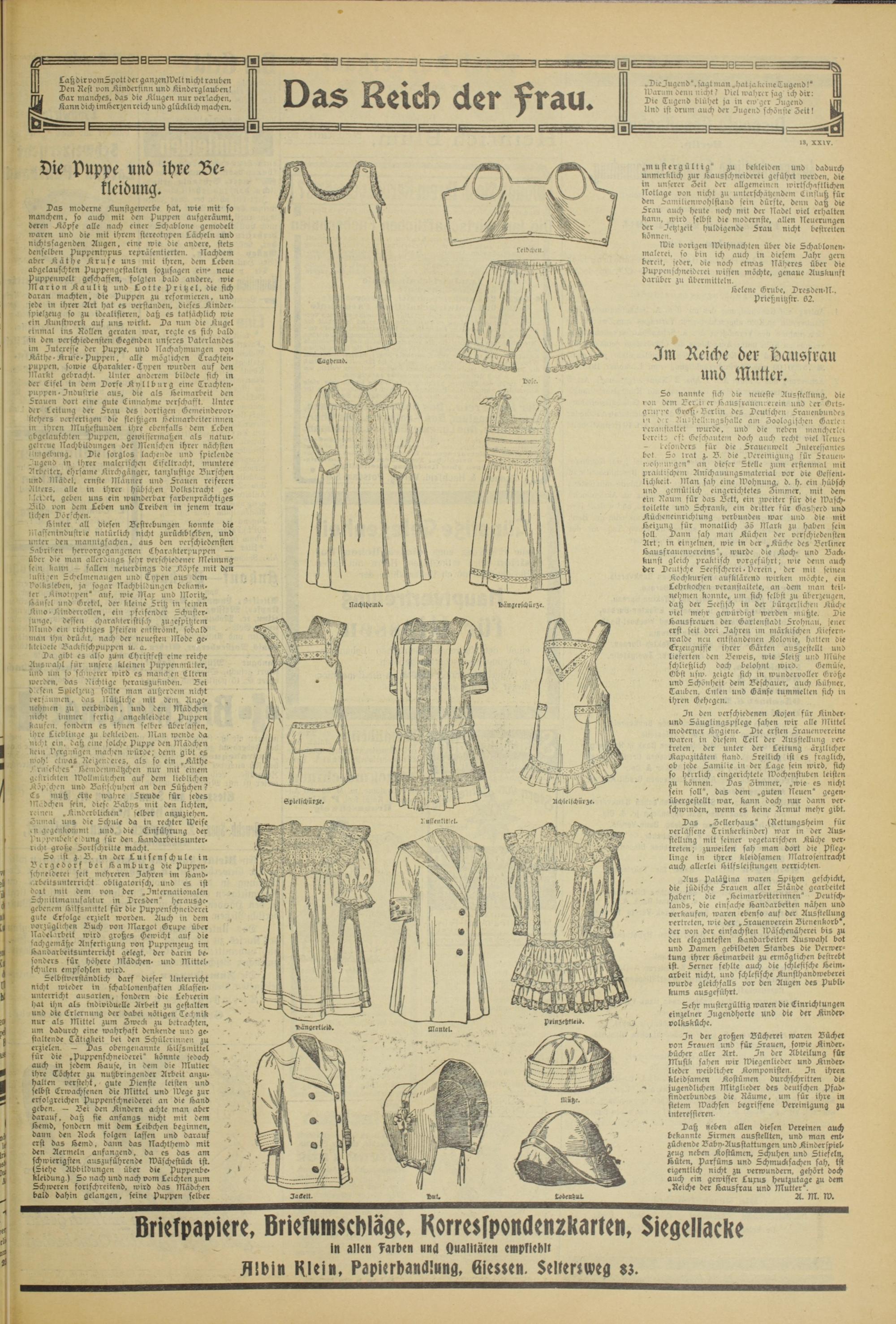 Kleidung ) So nach und nach vom Leichten zum Schweren fortschreitend, wird das Mädchen bald dahin gelangen, sein« Puppen selber
