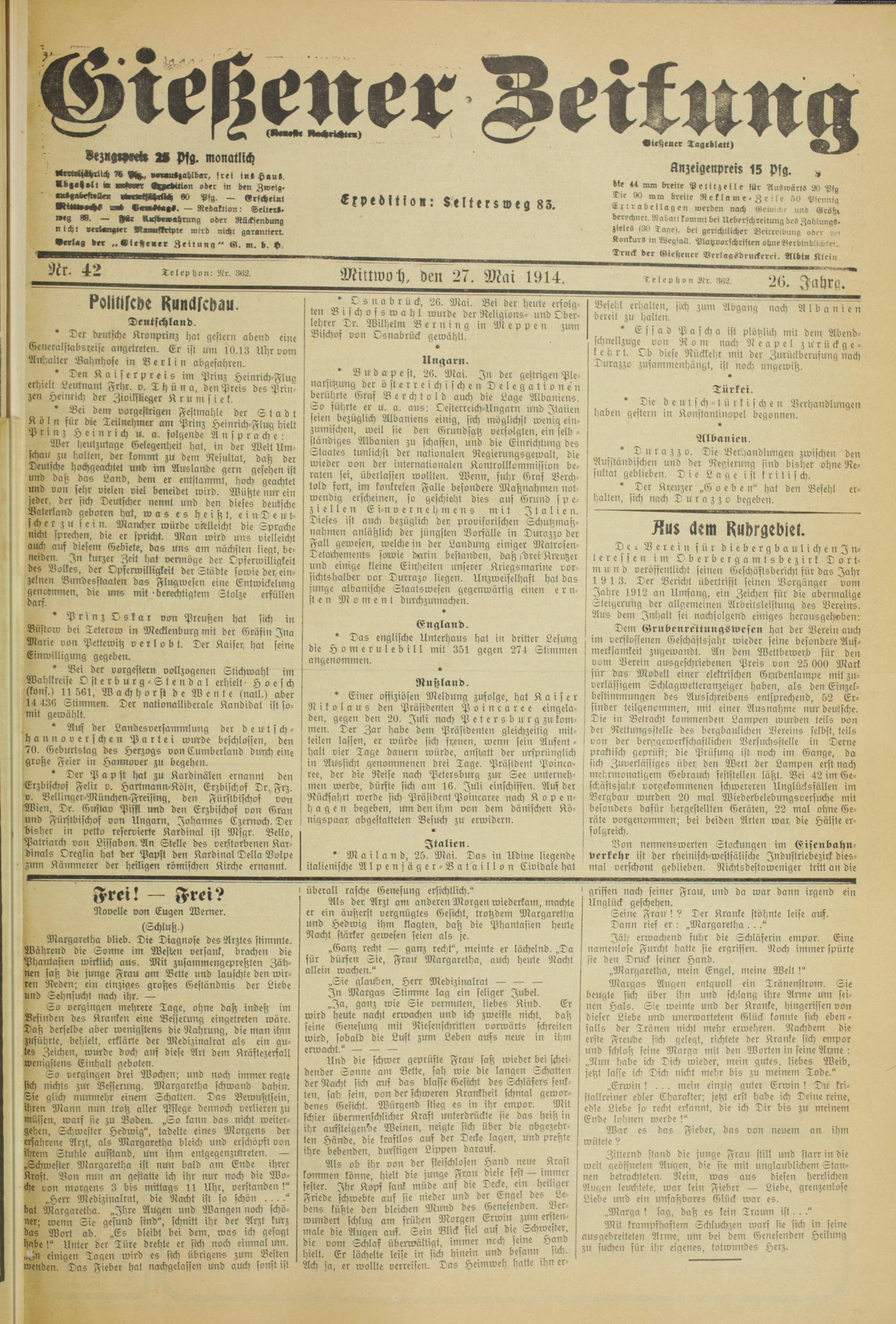 Mittwoh. den 27. Mai 1914.